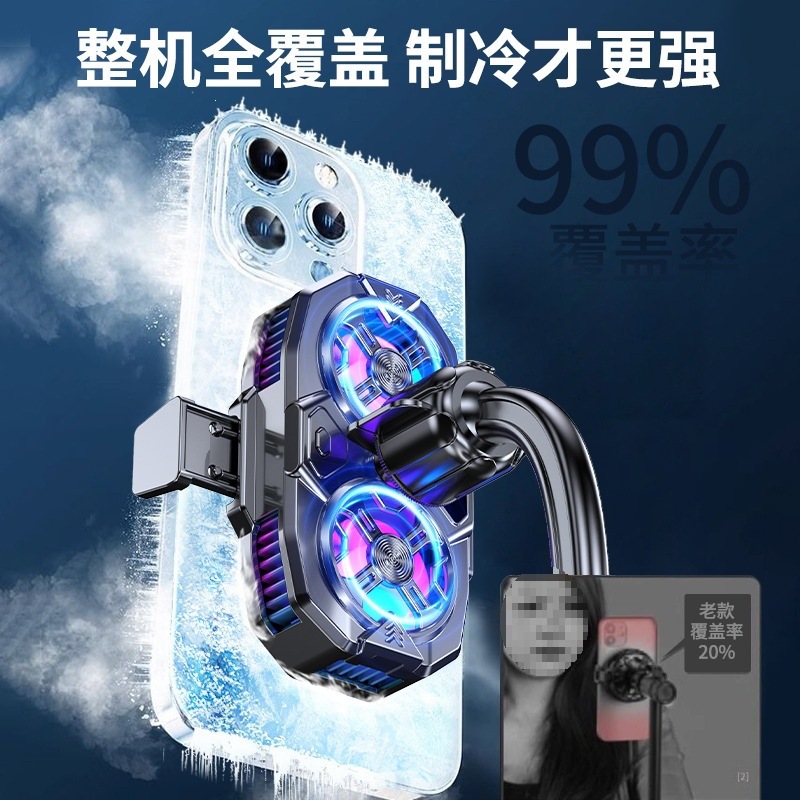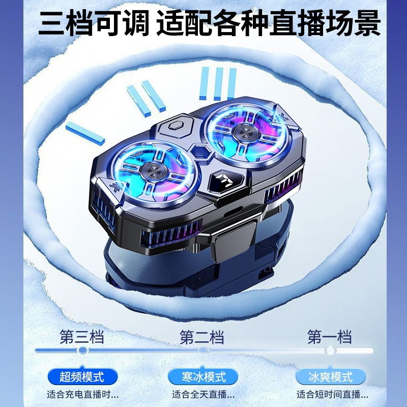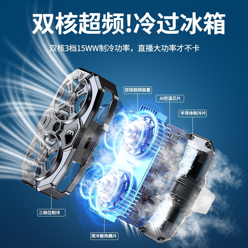 跨境版手机半导体直播散热器07数显三档可调双涡轮制冷适用直播