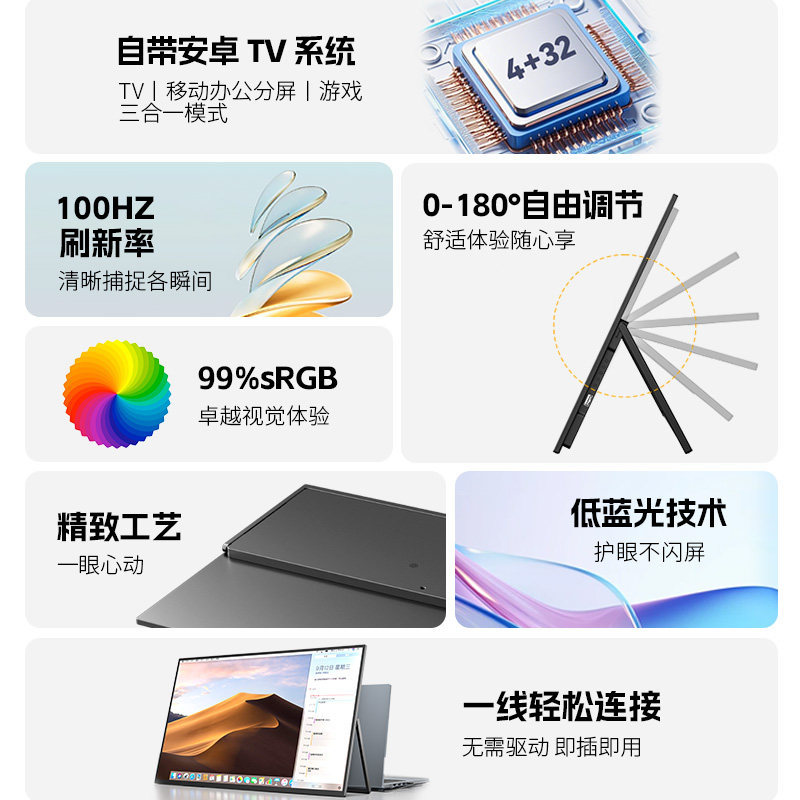 | 规格 | E215K【新形态2.5k高刷超大屏】21.5寸 2.5k 100hz 100%srbg 支持壁挂 | 规格 | E215T【新形态触控超大屏】21.5寸 1080P 十点触控 96%srbg 支持壁挂 |