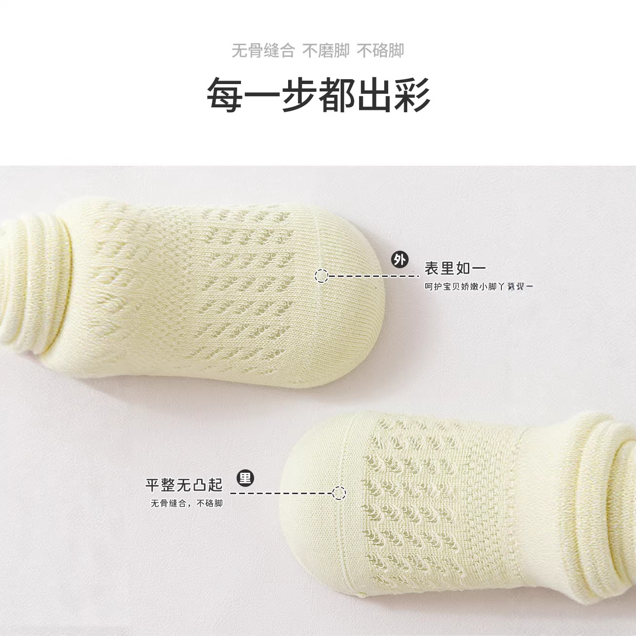 26新款无骨松口宝宝袜婴儿小中童薄棉镂空透气袜子可爱卡通网眼袜