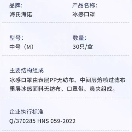 海氏海诺 A245.冰感口罩(成人 M码 独立) 30袋/盒—1盒