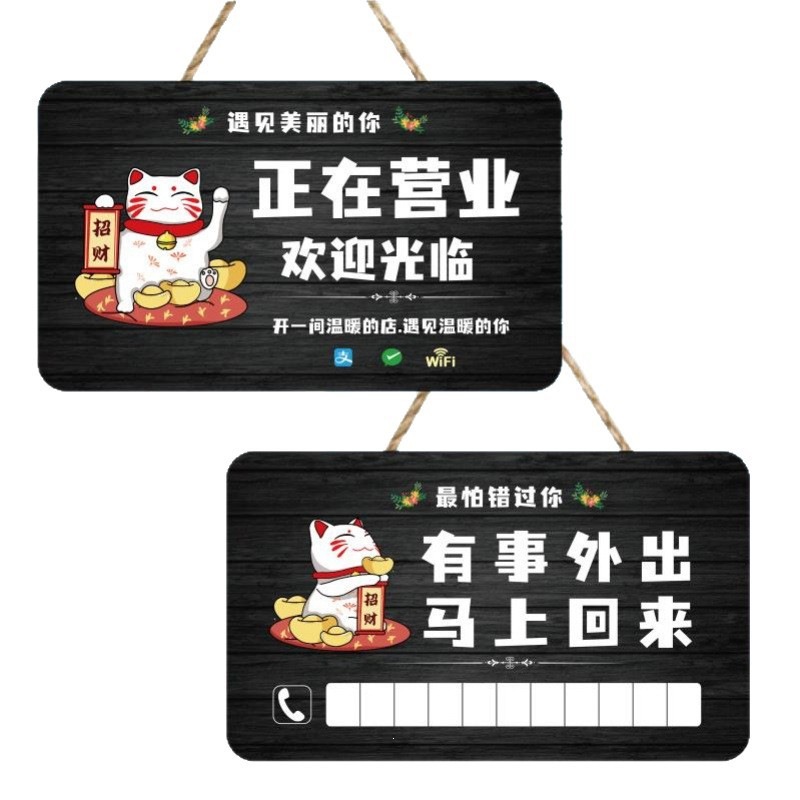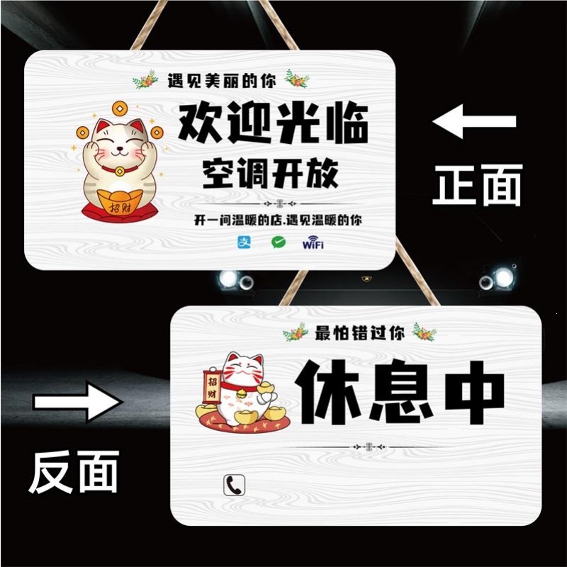 空调开放正在营业中挂牌双面休息有事外出接送孩子电话提示牌