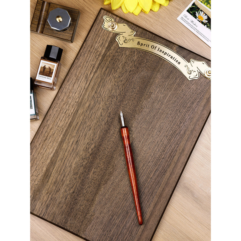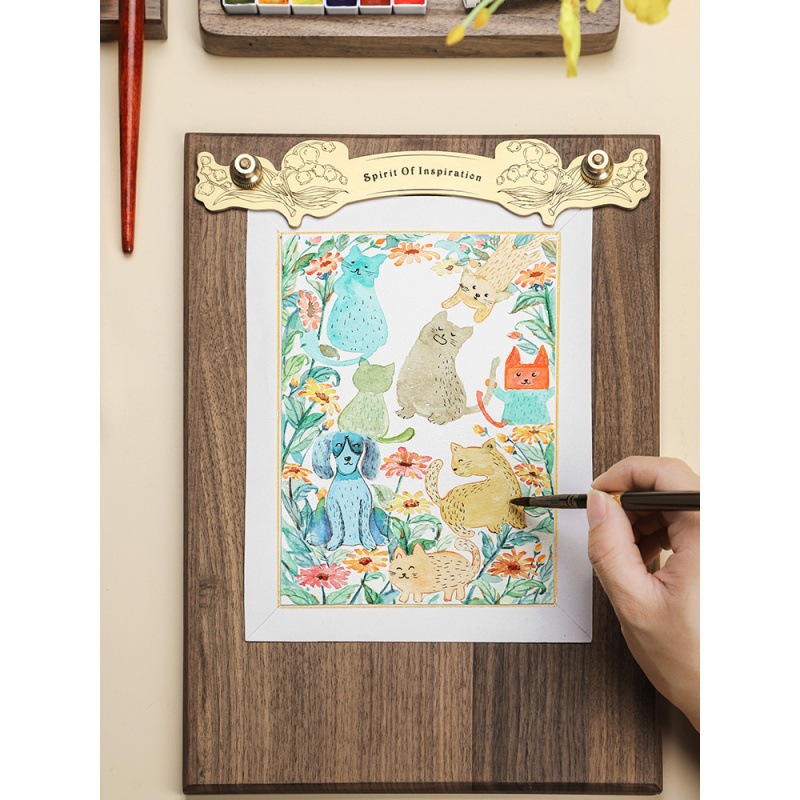 黑胡桃木画板美术生画架板夹黄铜菜单夹复古素描速写板手绘板其他