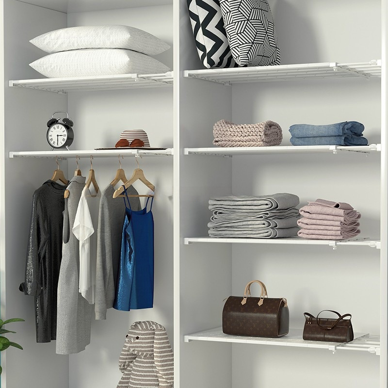 衣柜隔板分层架学生柜子隔层扣板收纳整理架伸缩置物架鞋柜橱柜包