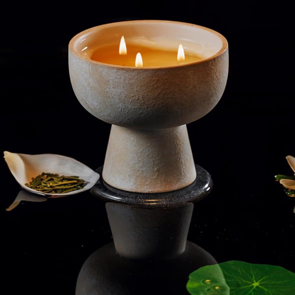 水泥高脚烛台三芯香薰蜡烛杯家用香薰碗桌面香氛容器
