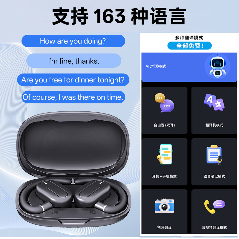 AI智能翻译耳机同声实时视频语音出国旅拍照多国翻译语言互译免费