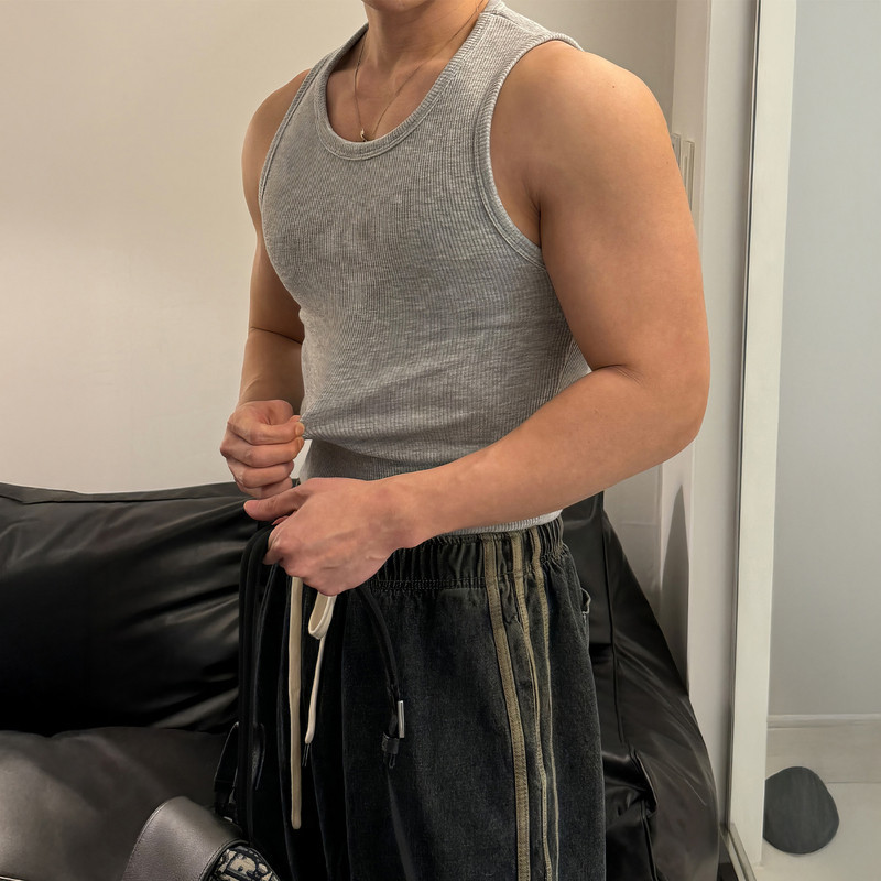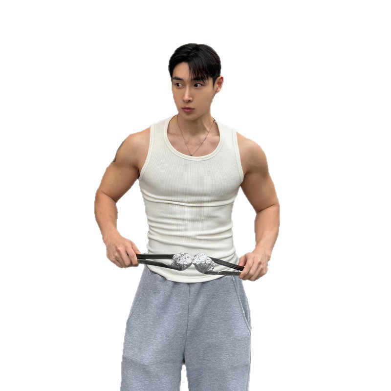 夏季健身运动背心男款美式休闲纯色弹力圆领无袖T恤显肌肉汗衫潮