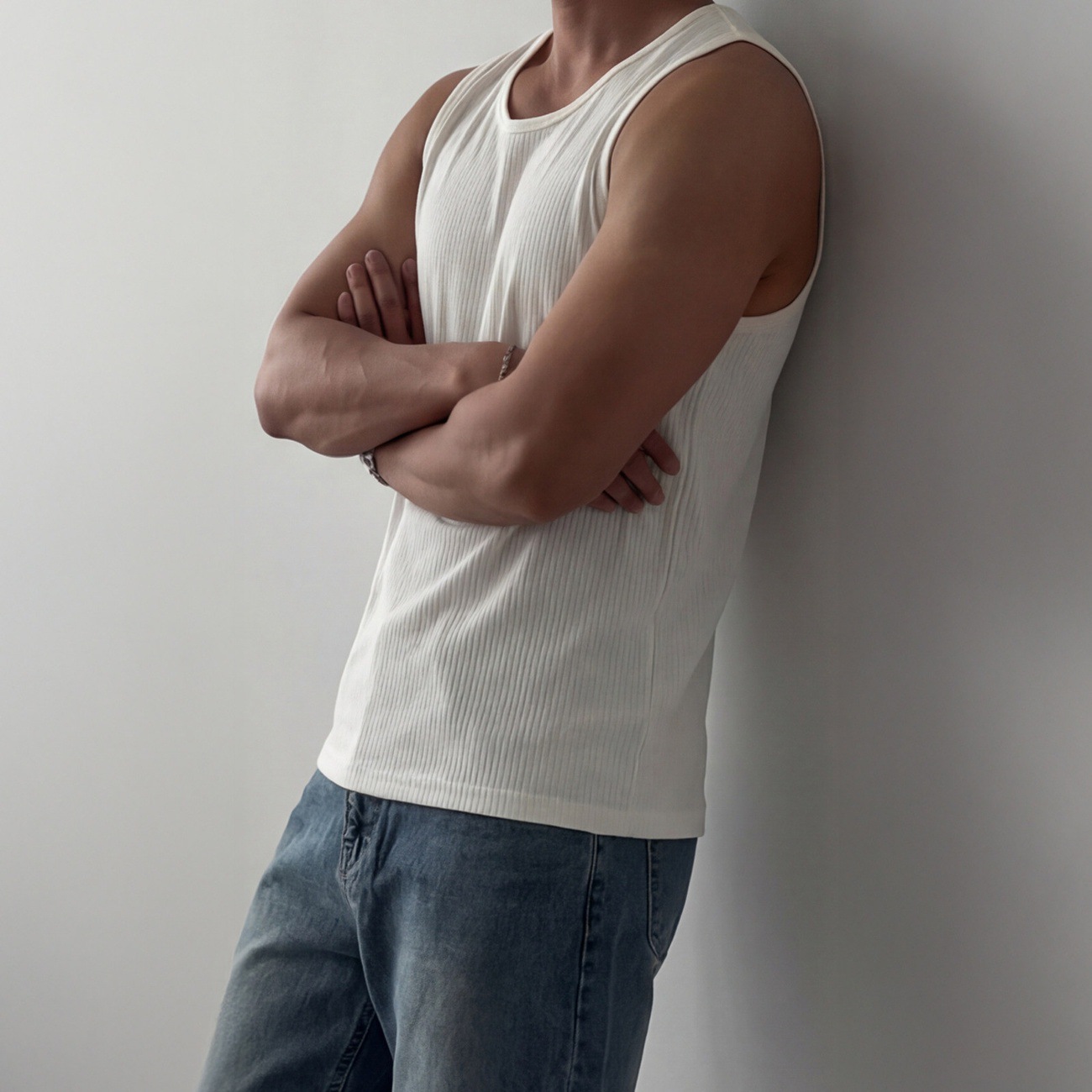 白色运动宽松针织背心男夏季硬汉显肌肉弹力无袖T恤透气打底上衣