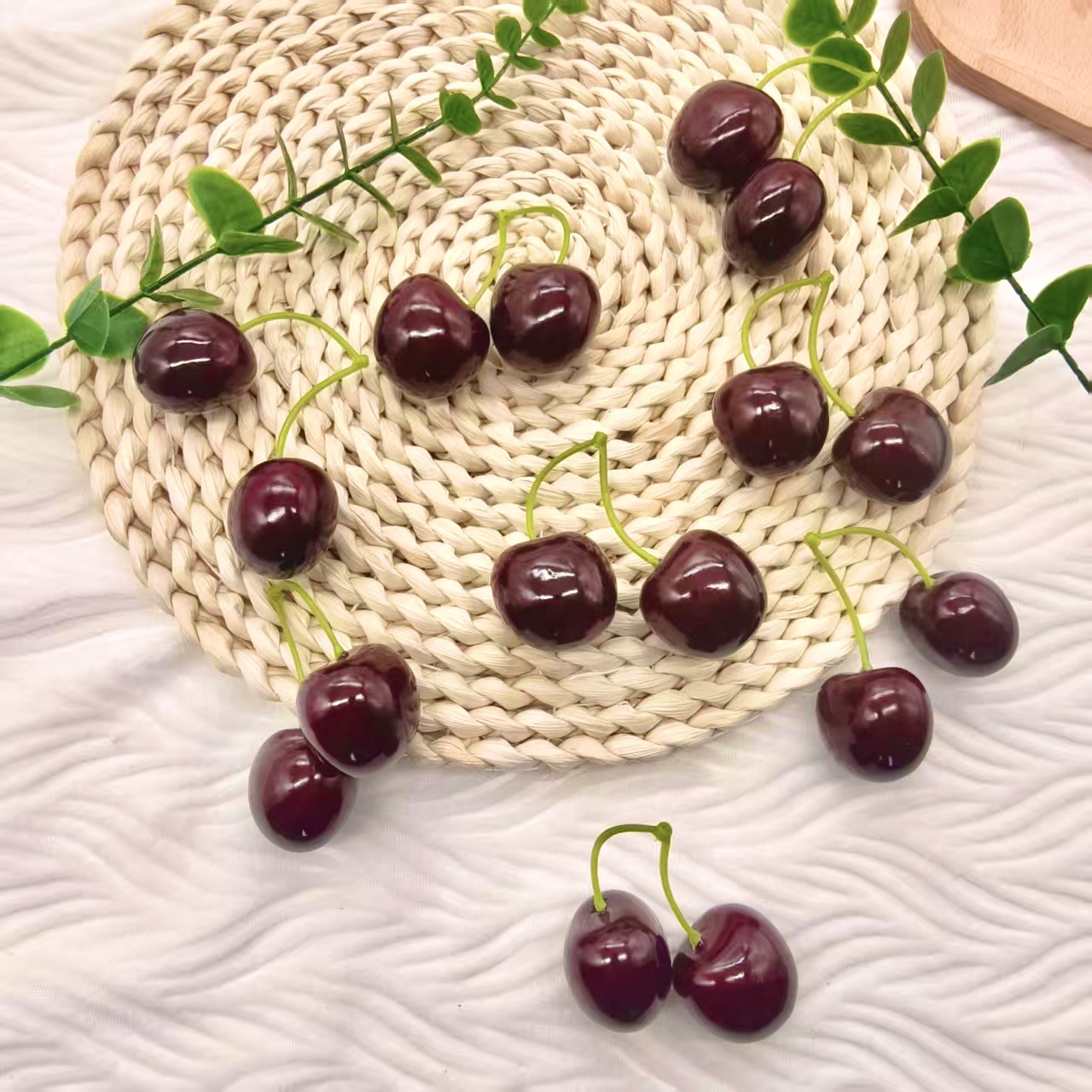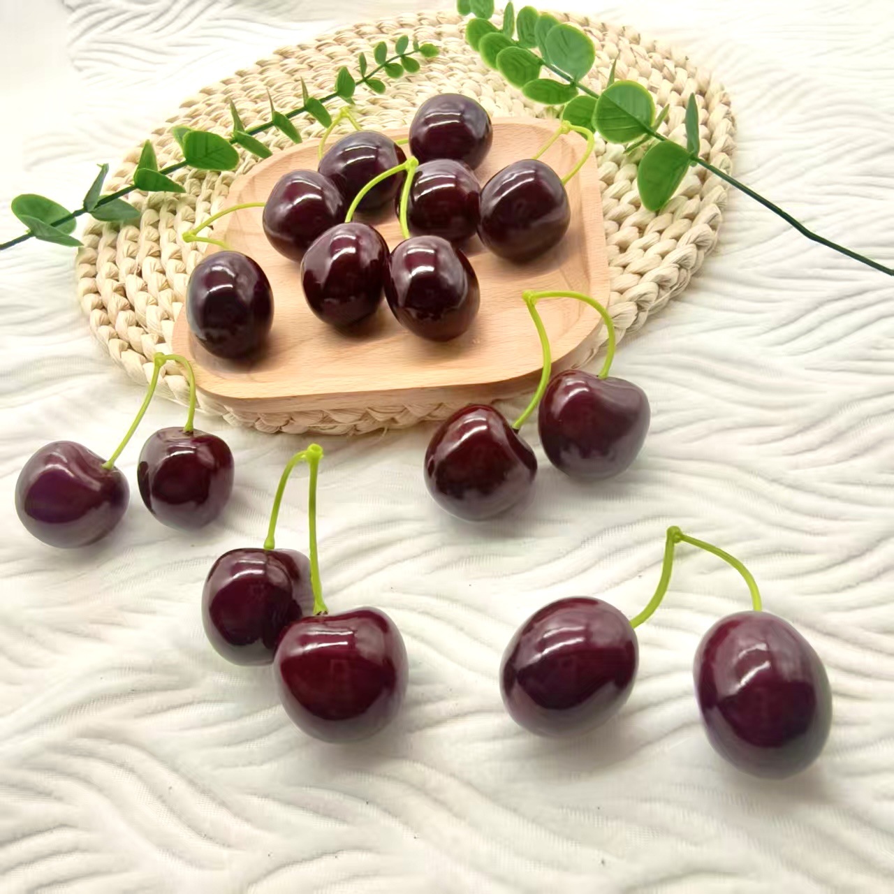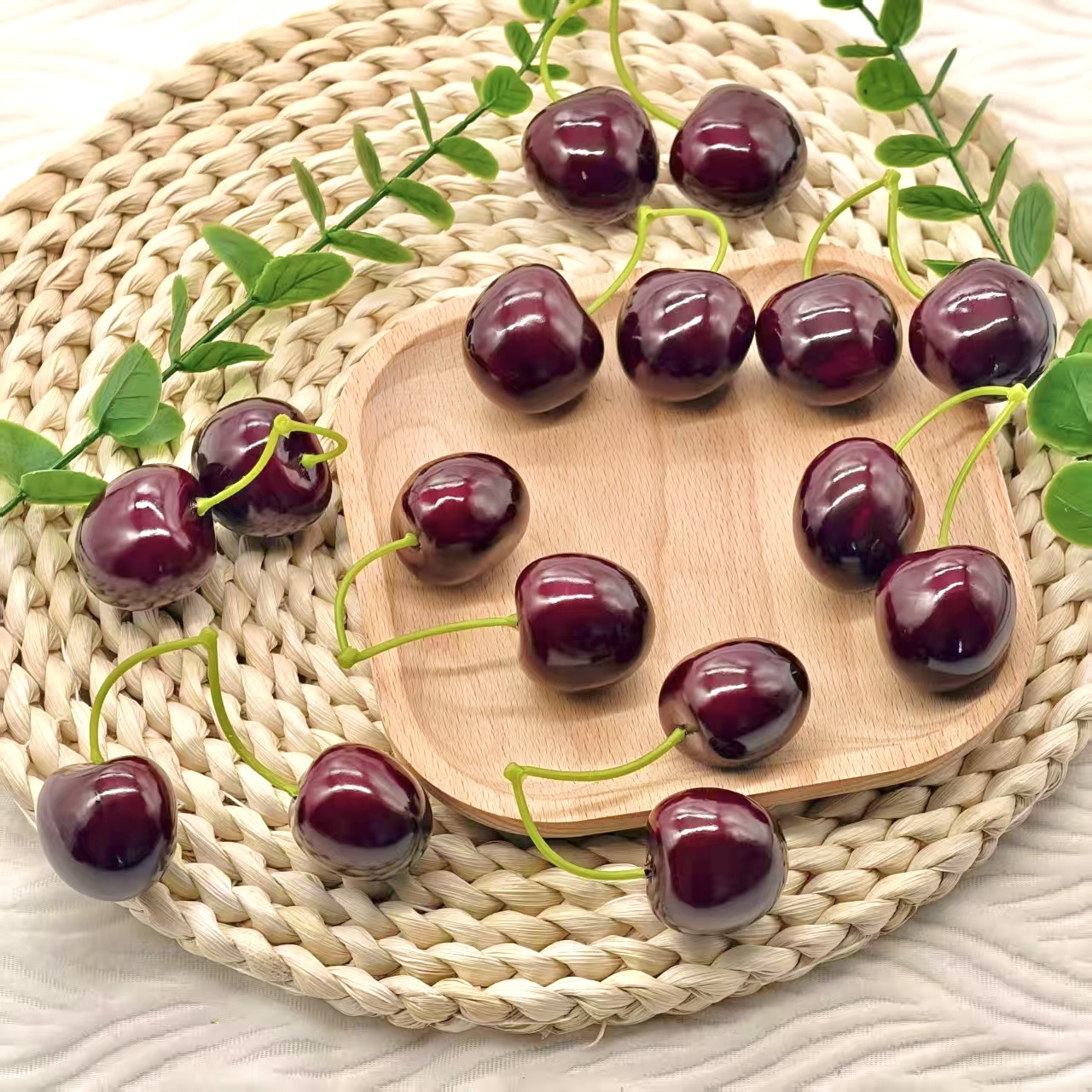 仿真车厘子3.5cm双叉大樱桃蛋糕装饰摆件早教道具品泡沫仿真水果