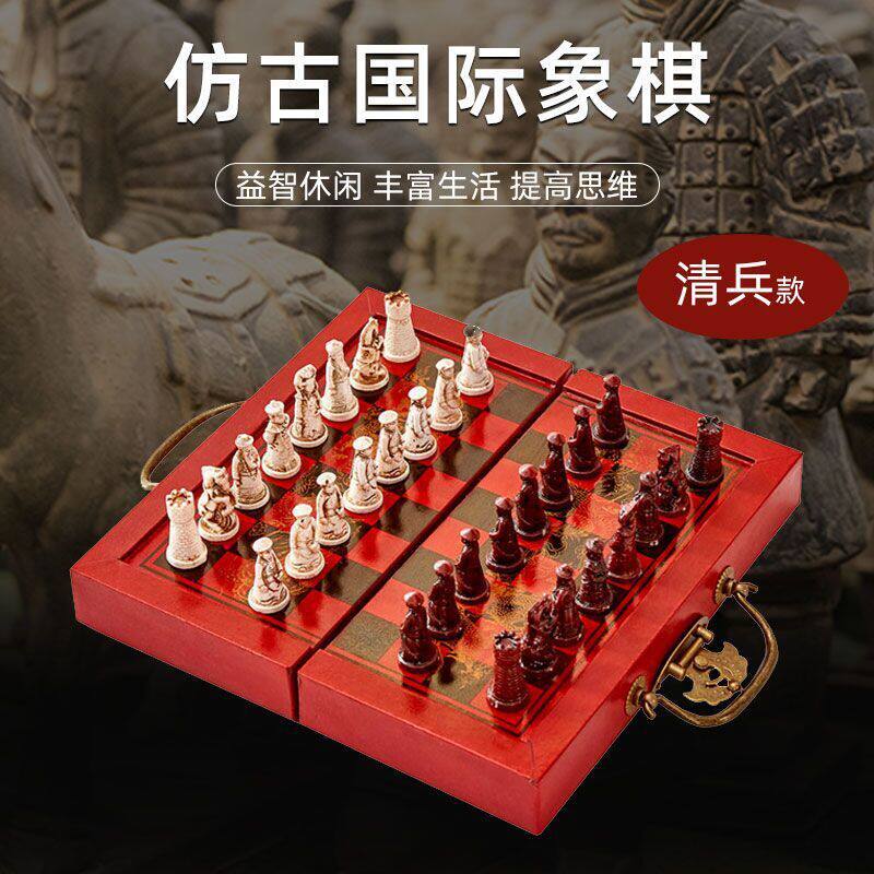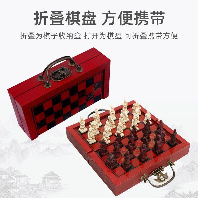 德国2026新款兵马俑国际象棋送欧美外国人仿古折叠棋盘立体清兵棋