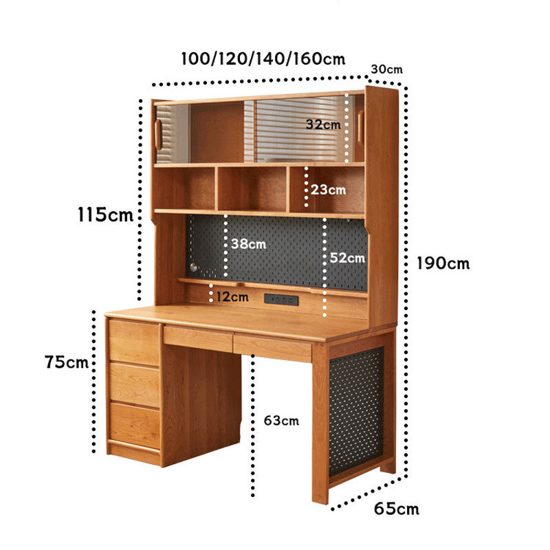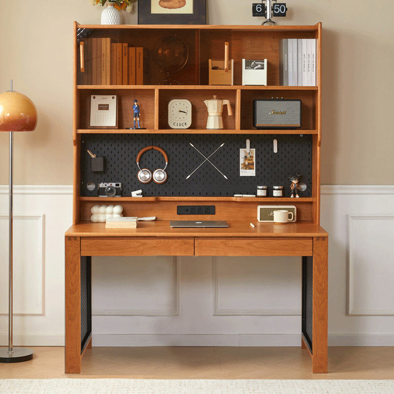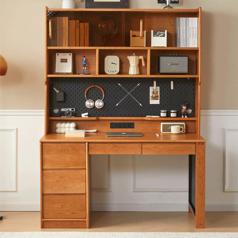 北美樱桃木书桌实木书柜书架一体学习桌学生写字桌原木电脑办公桌