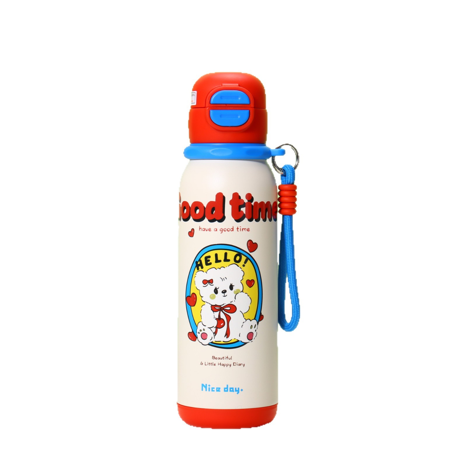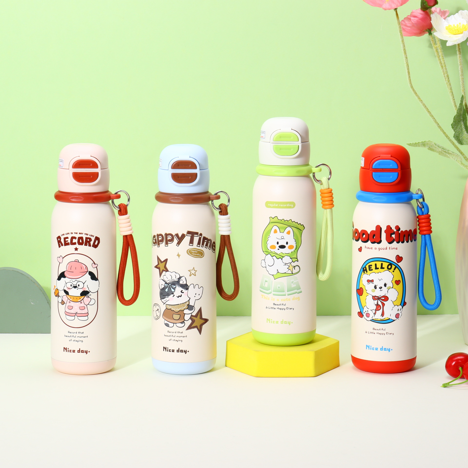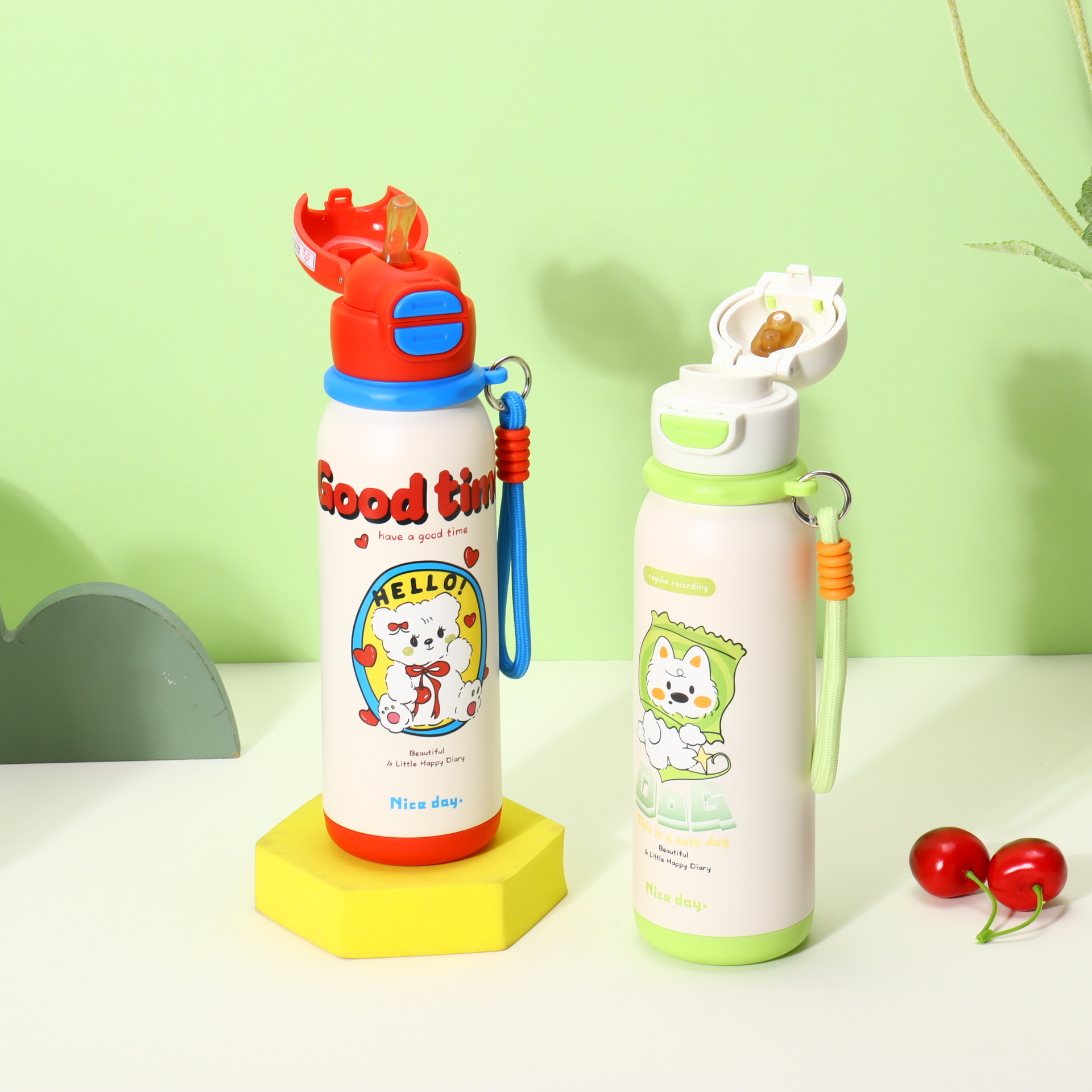 双盖可爱卡通316不锈钢保温杯带吸管杯套学生男女便携一杯双盖水