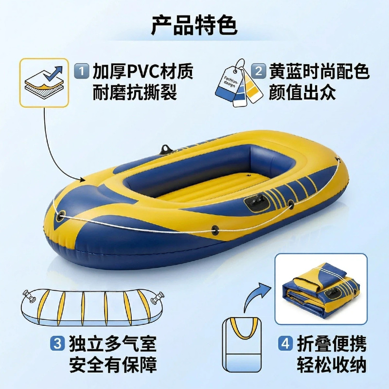 源头工厂加厚耐磨皮划艇户外钓鱼漂流PVC充气船跨境专供现货批发