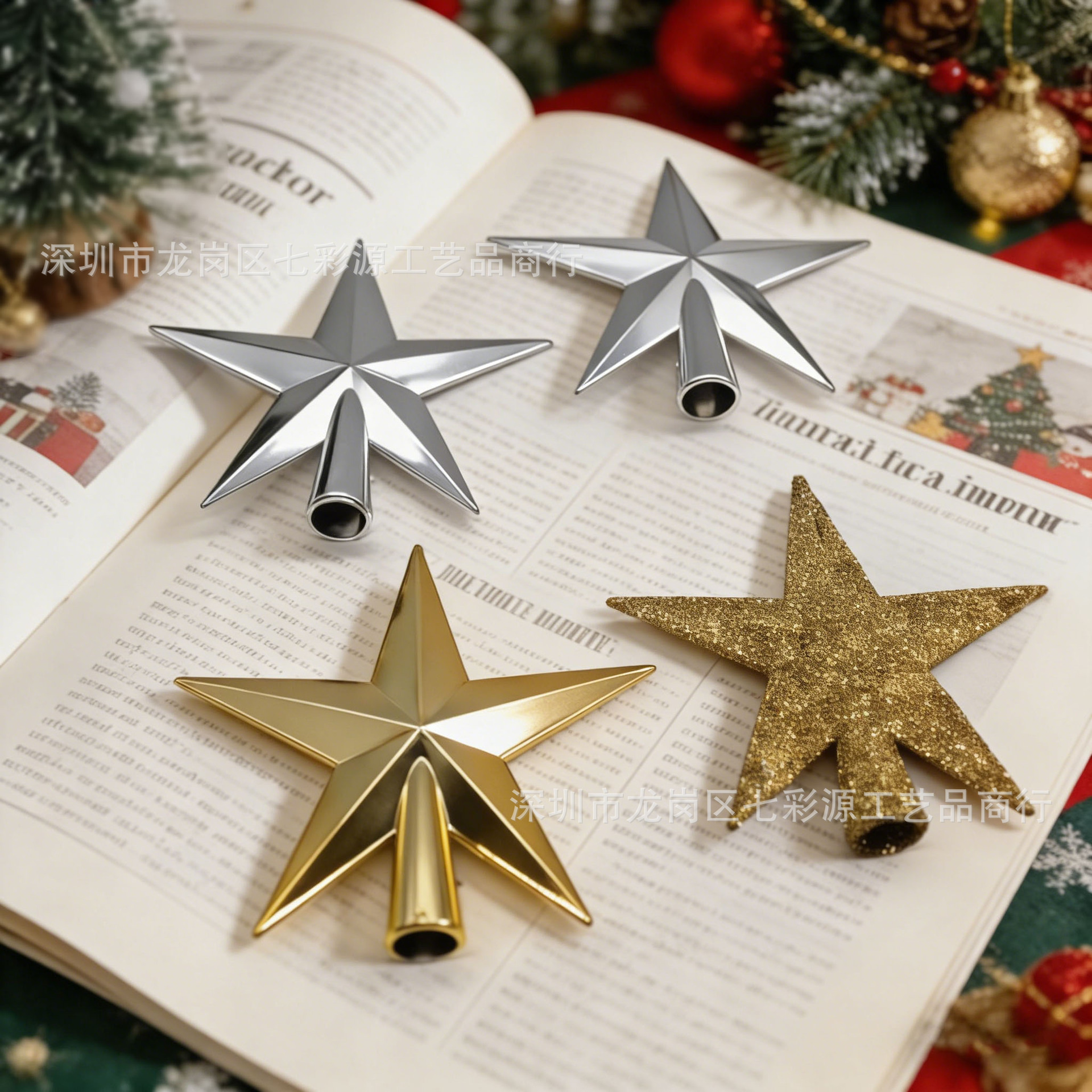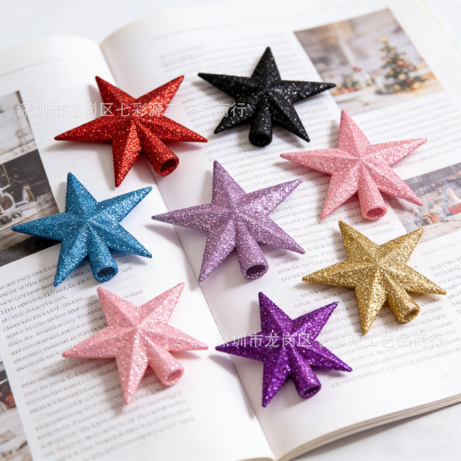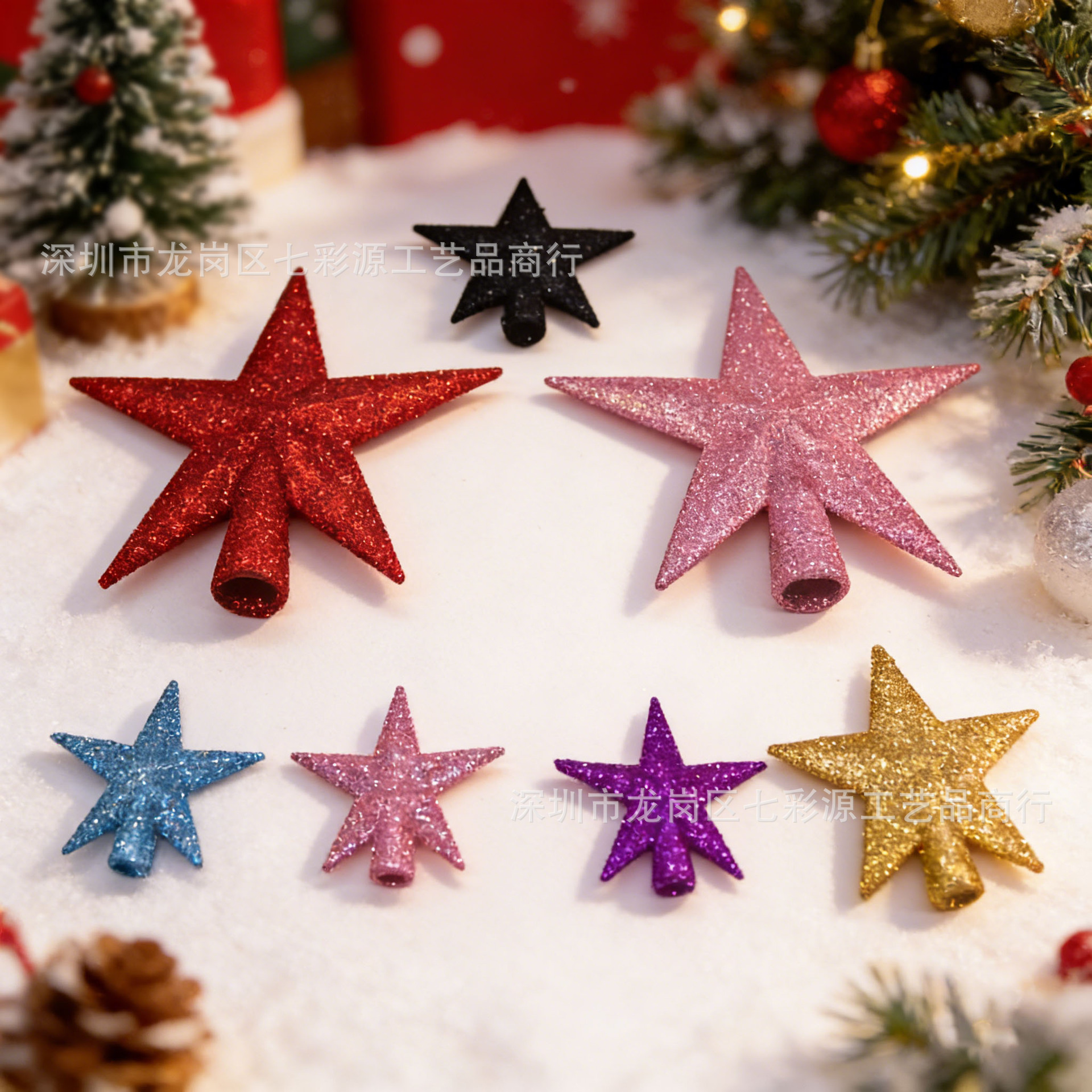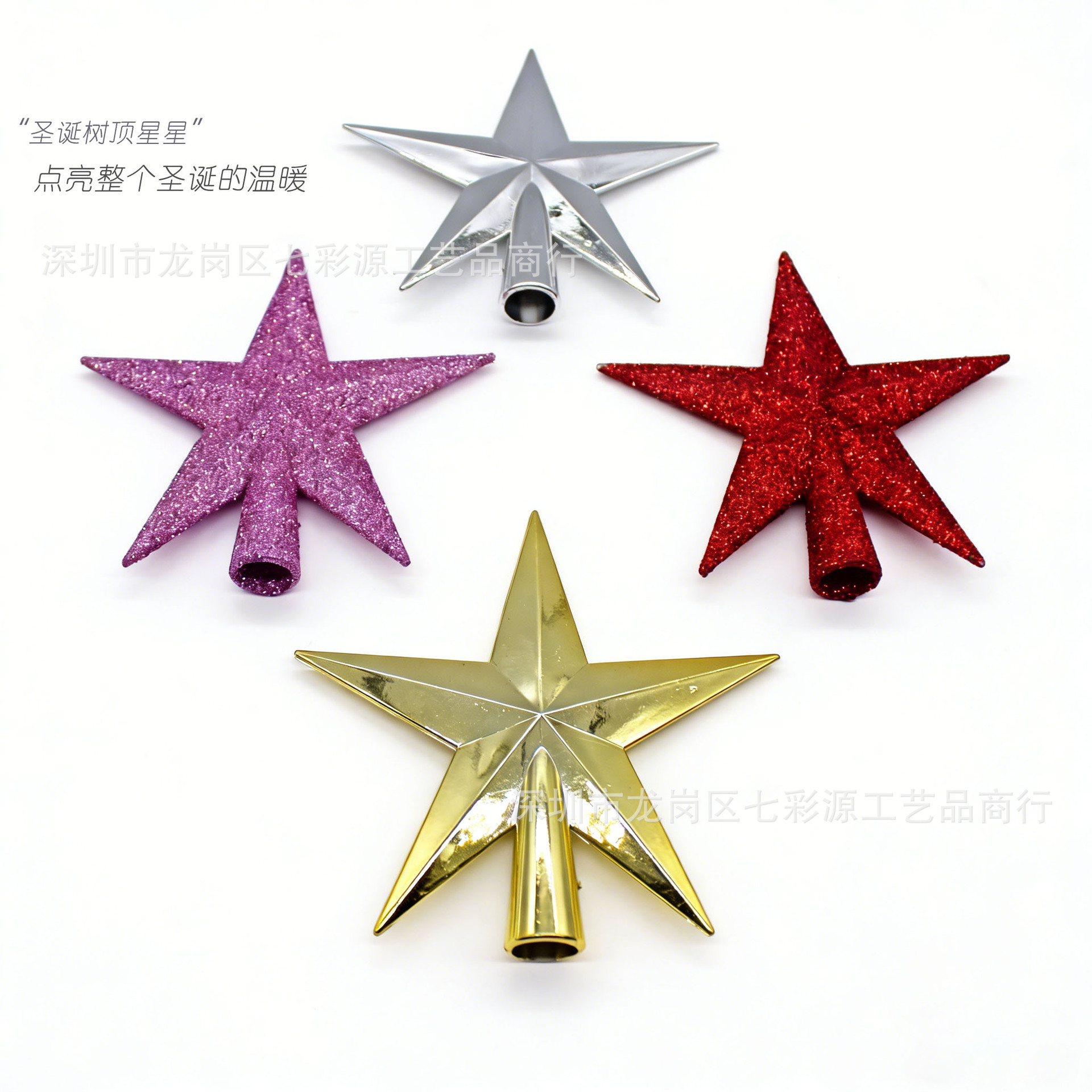 跨境圣诞树顶星 闪粉 / 电镀树顶星配件星星圣诞挂件圣诞装饰供应