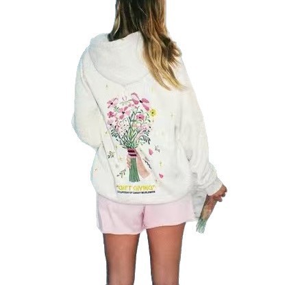2026春秋跨境女士新刺绣款落肩袖欧码宽松连帽衫潮牌卫衣外套