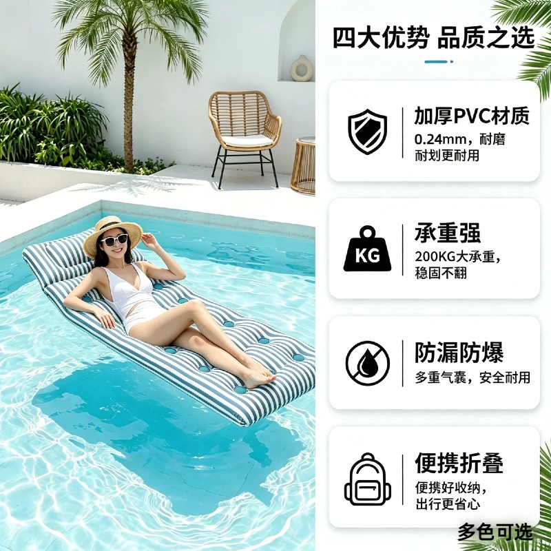 定制条纹充气浮床成人泳池漂浮躺椅水上浮排漂浮垫批发工厂直营