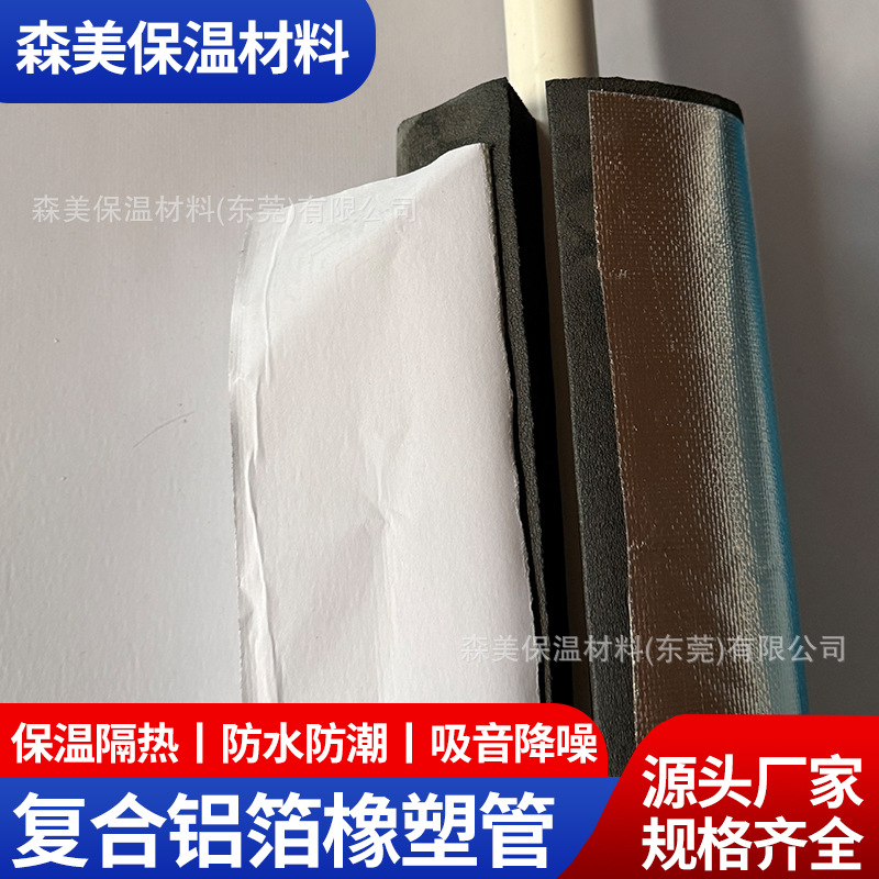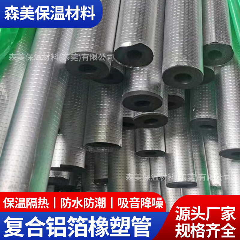 现货B1级复合橡塑保温管铝箔橡塑管壳阻燃隔热自粘开口铝箔橡塑管