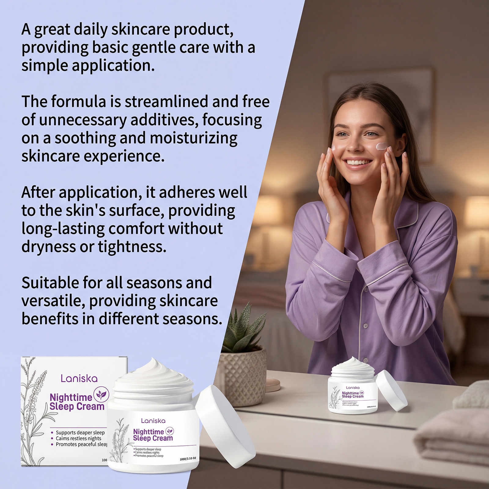 LANISKA 夜间舒适霜 滋润保湿温和成分呵护舒适日常按摩涂抹霜