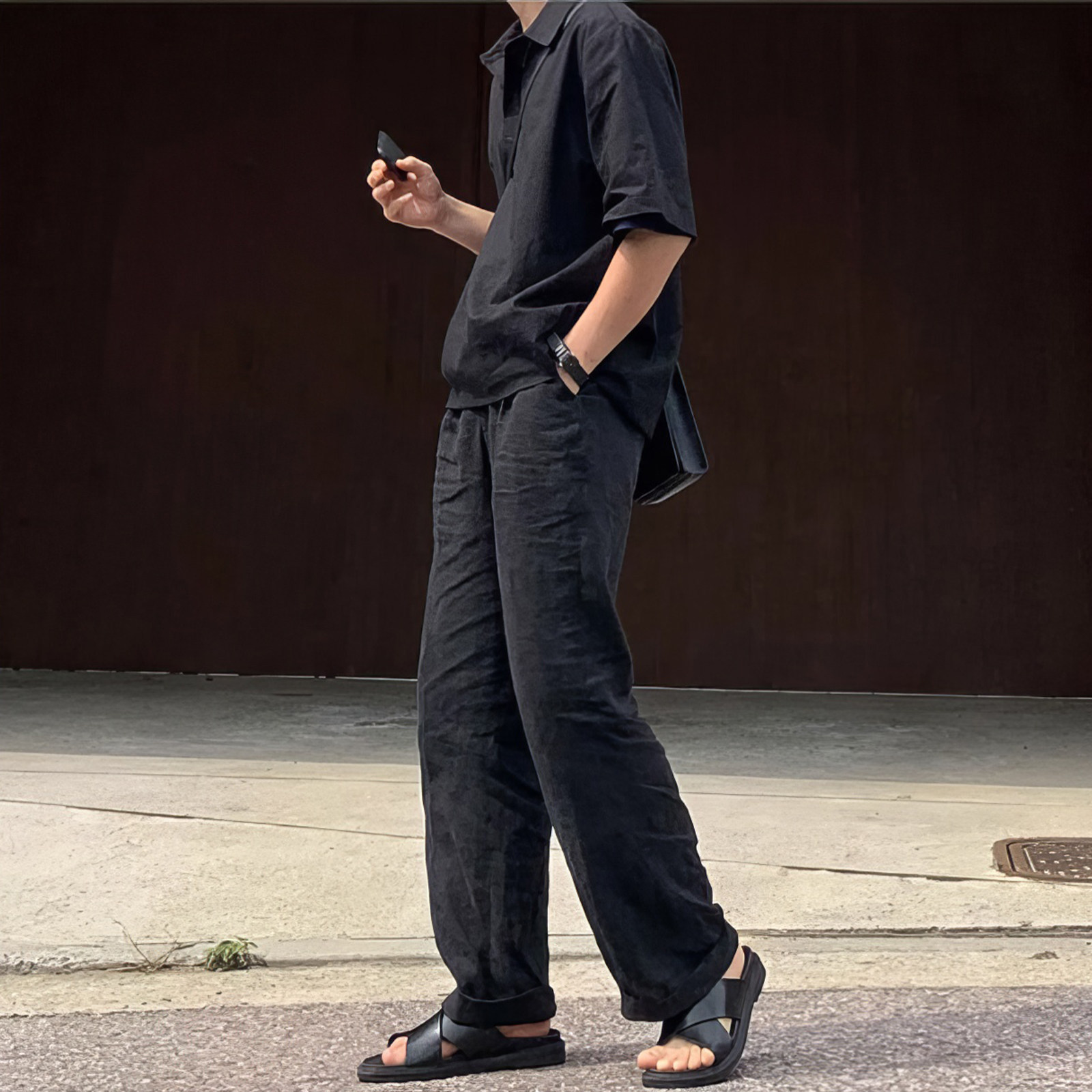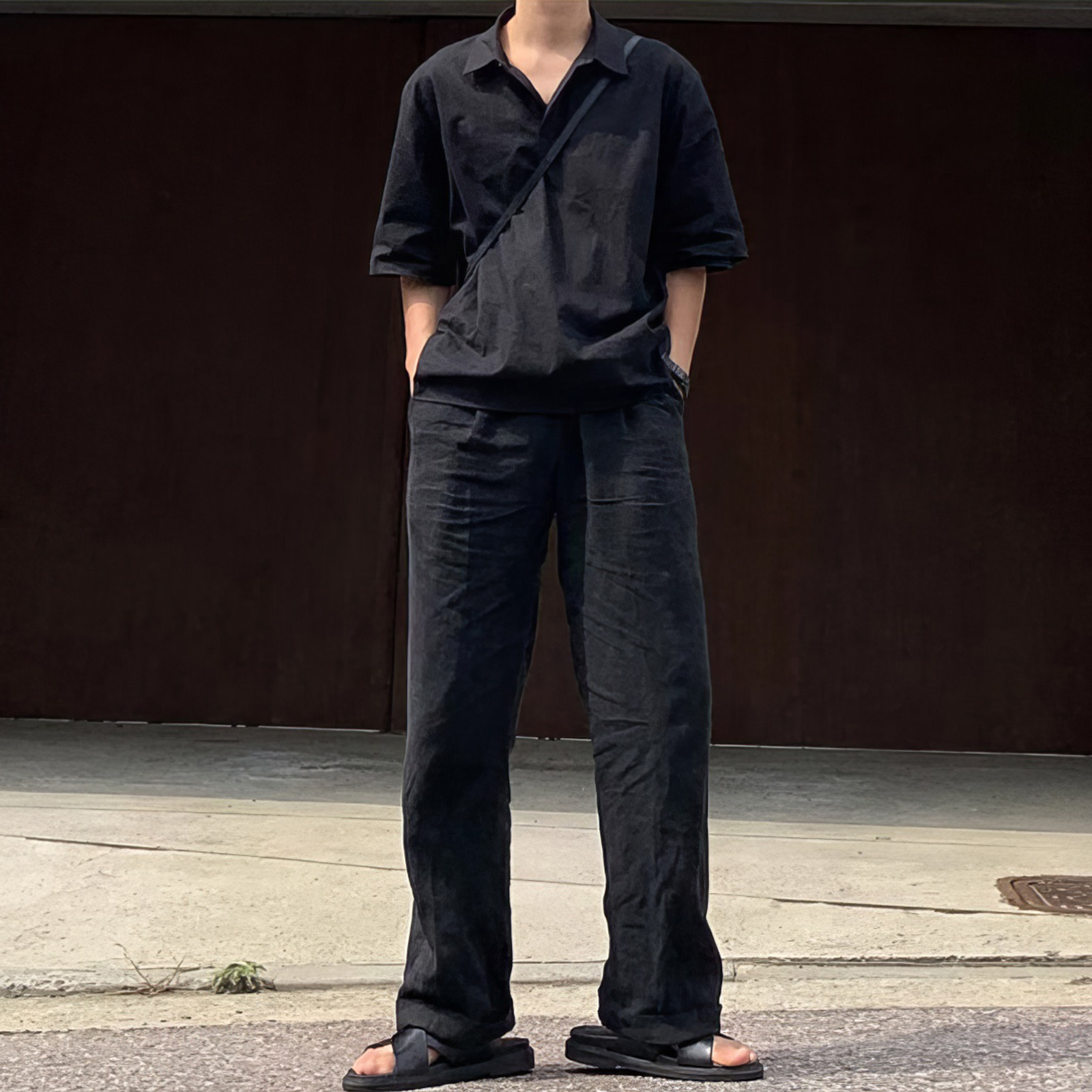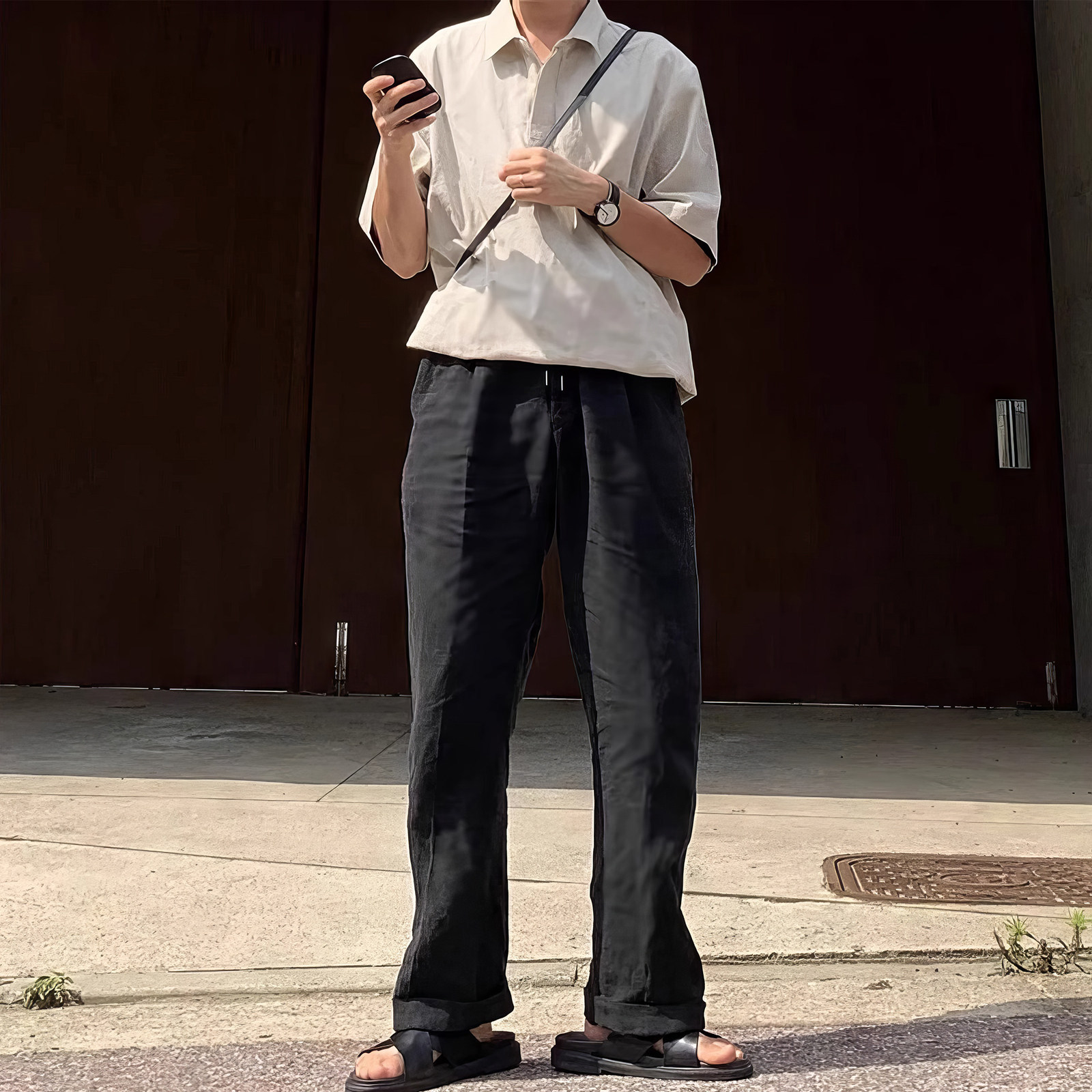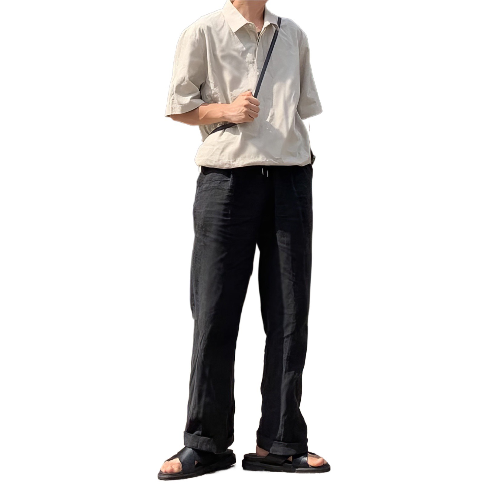 短袖衬衫男士夏季韩版宽松休闲纯色慵懒百搭半开领免熨烫高级感衬