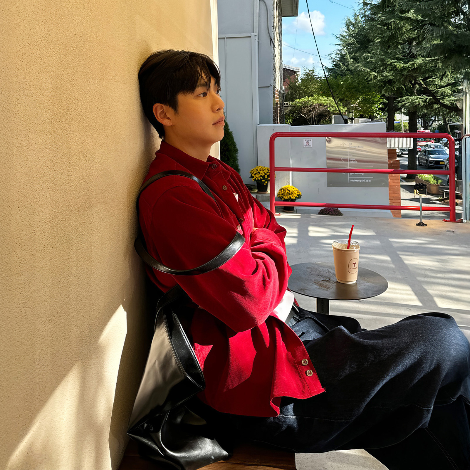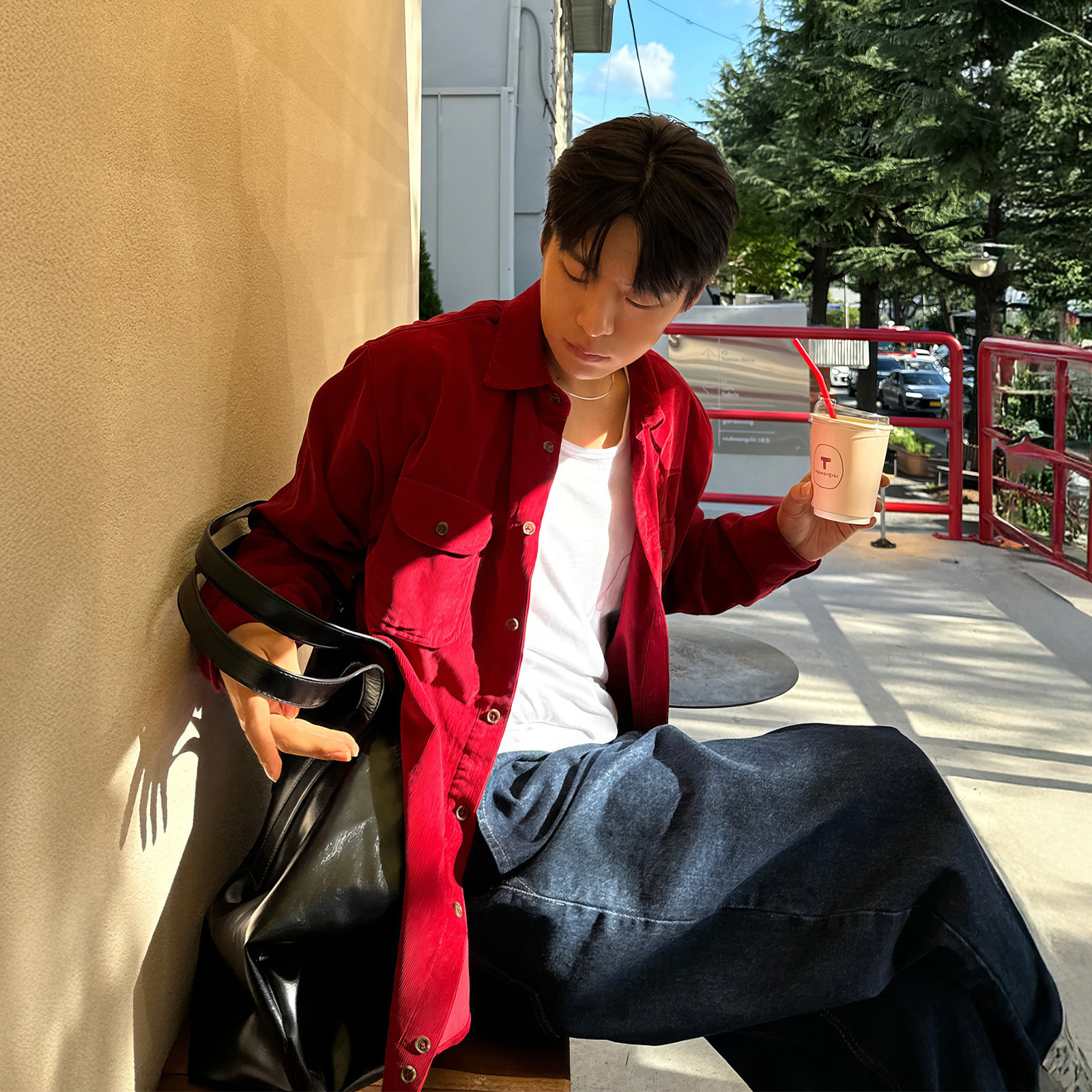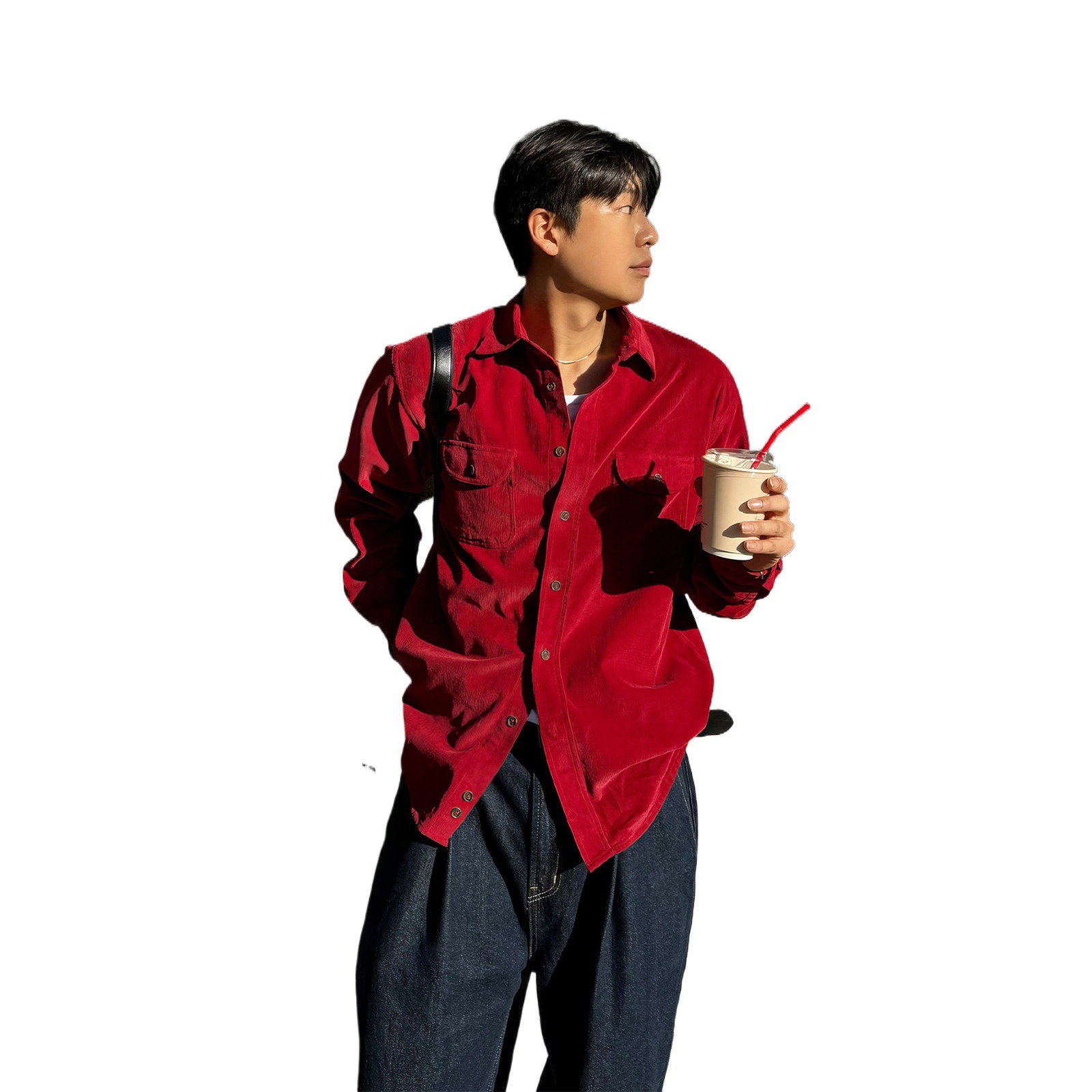 davidme红色本命年衬衫夹克男士灯芯绒日系工装cleanfit简约衬衣