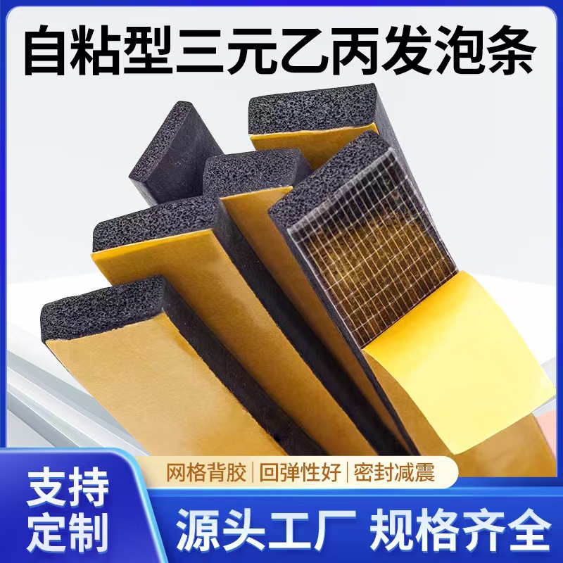三元乙丙橡胶发泡条epdm发泡背胶机柜防水自粘密封条方条扁条