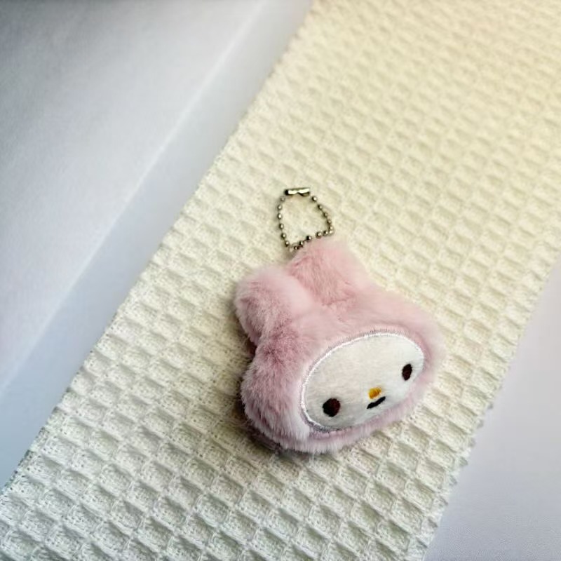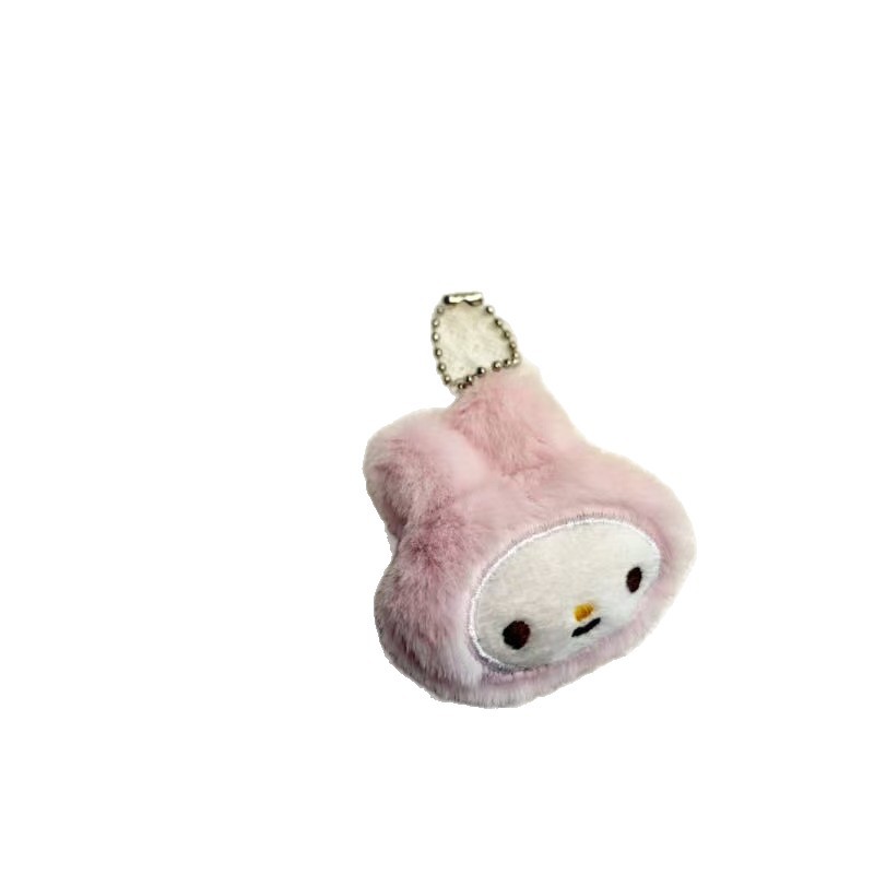 粉色卡通动物毛绒钥匙扣 圆脸公仔挂件 挂饰 配件 链条 混批