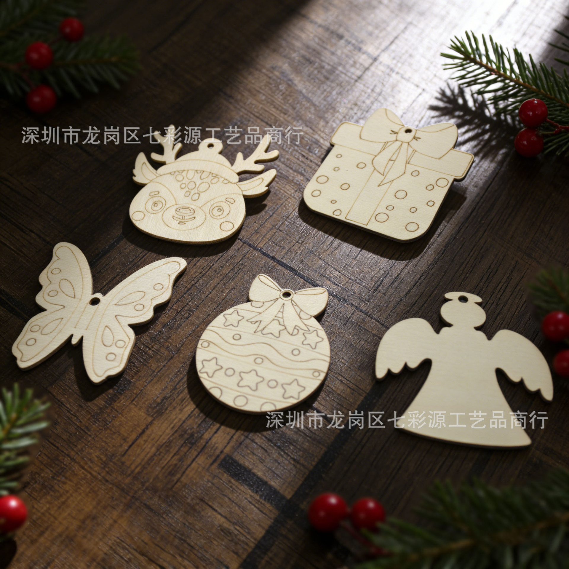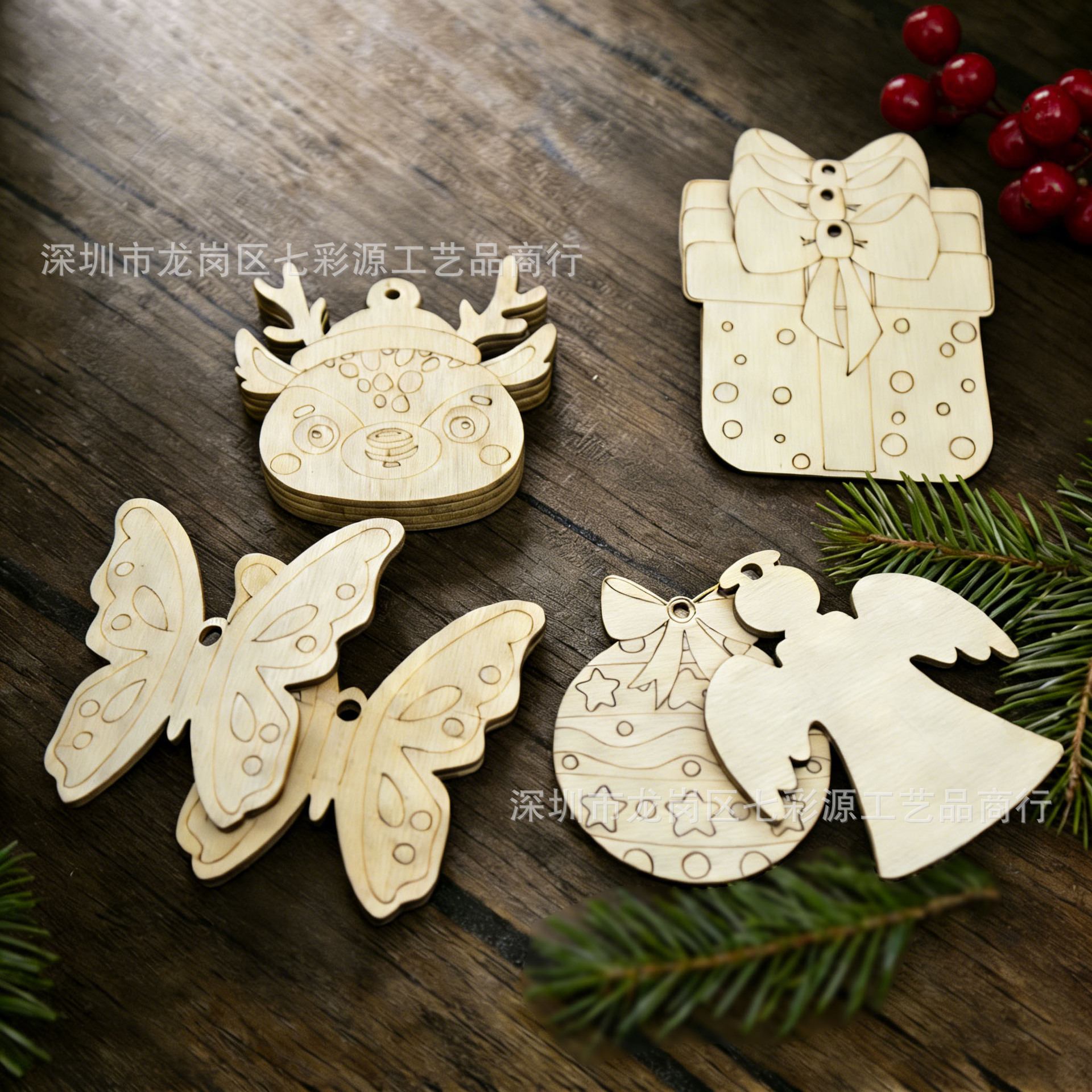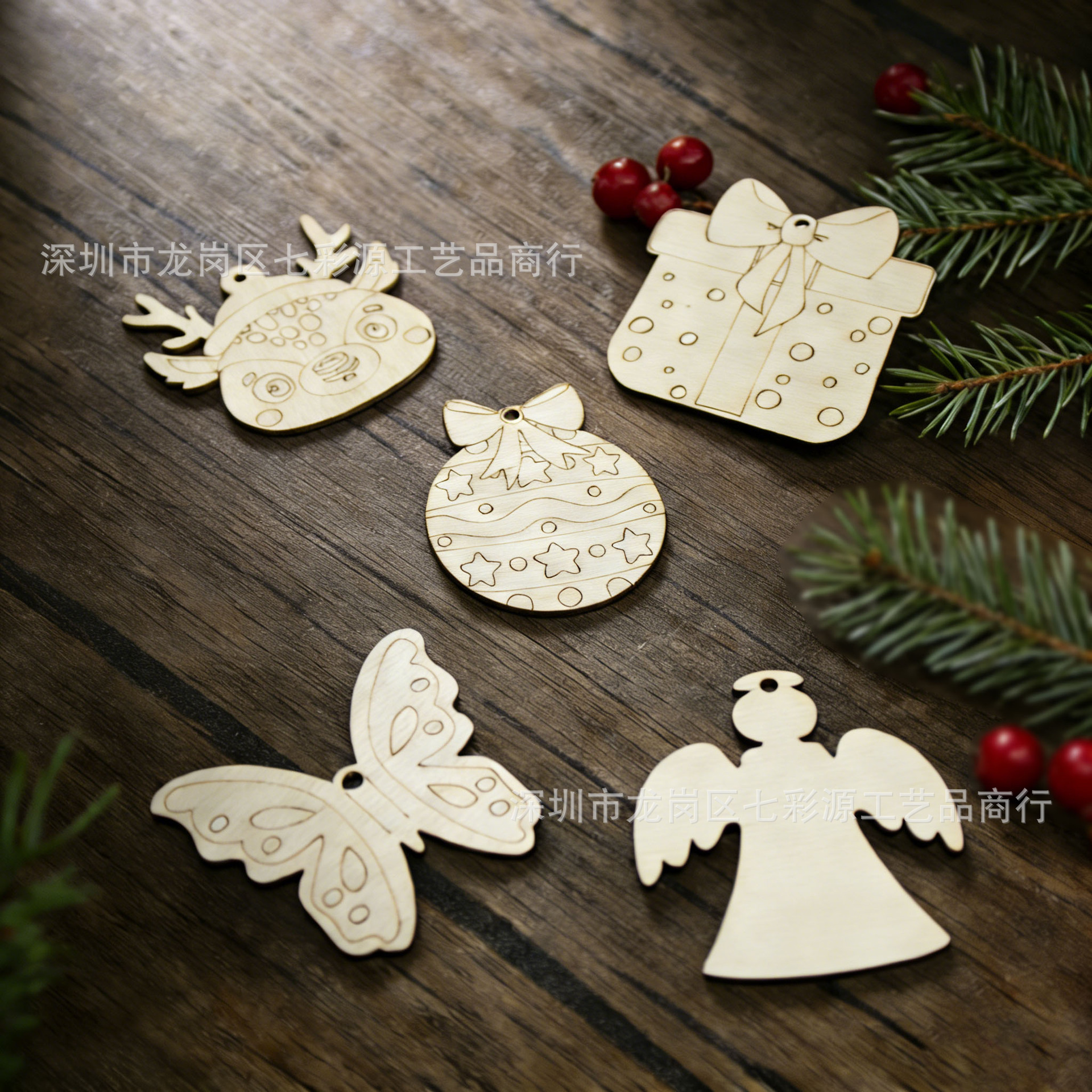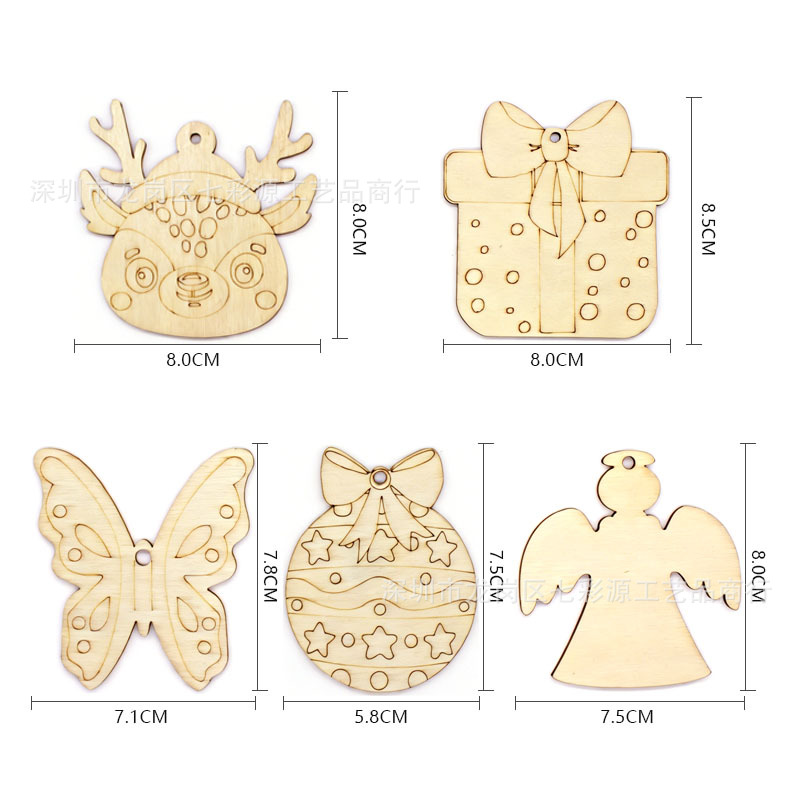 圣诞节装饰木质挂件diy手绘涂鸦木片激光切割空白板圣诞树装饰