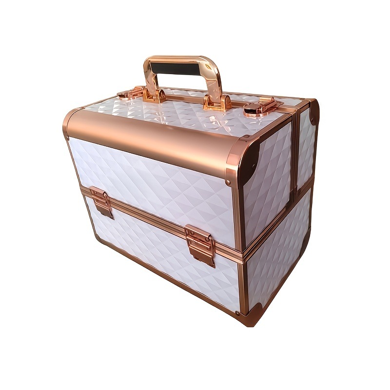 新款化妆箱便携铝框收纳箱三层双开大容量化妆箱美甲纹绣美容工具
