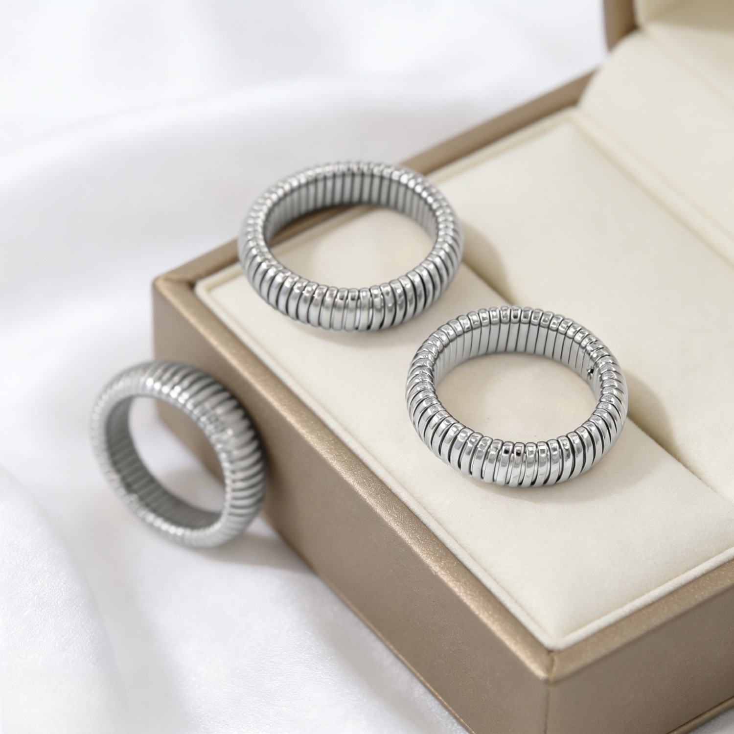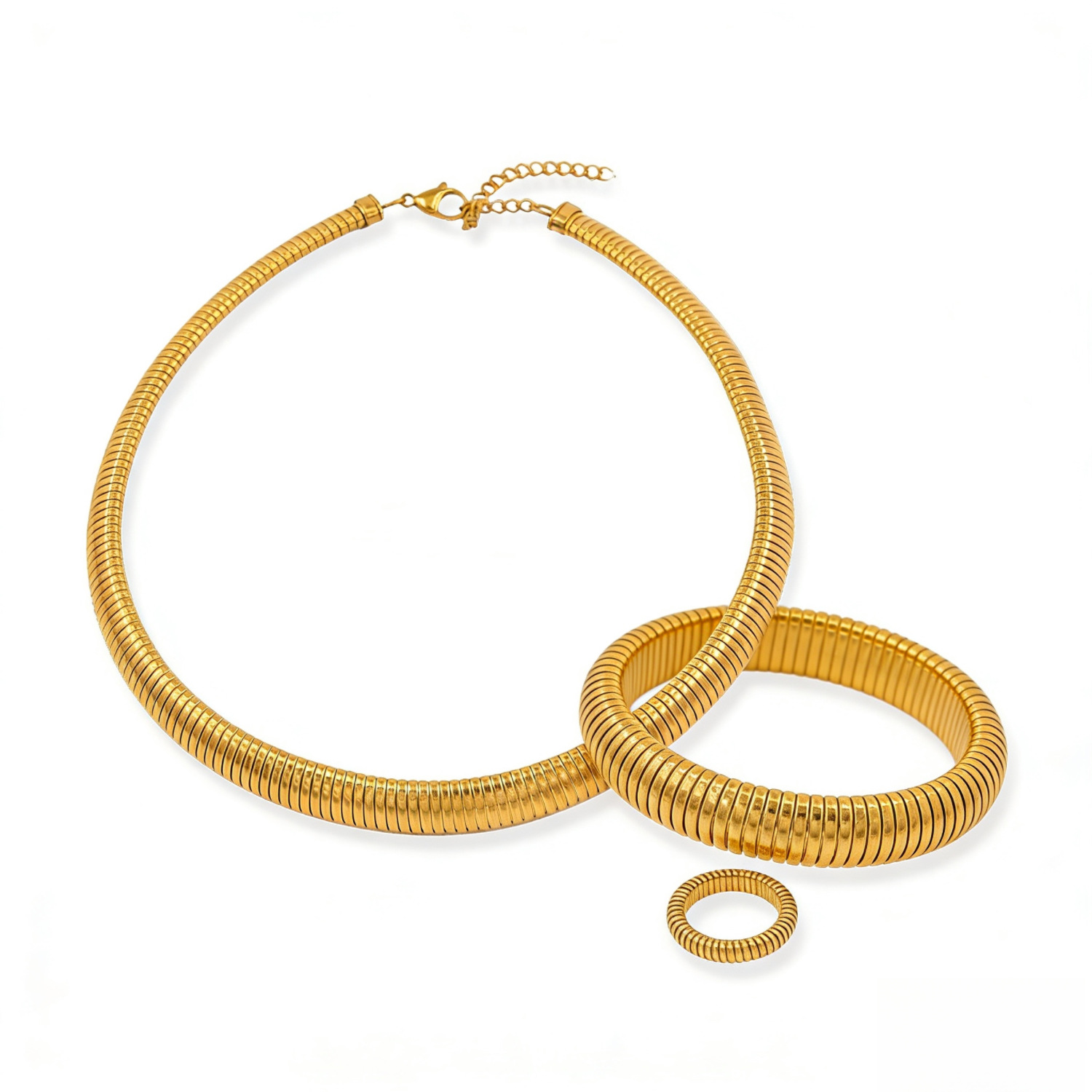 跨境热销不锈钢伸缩弹性鹅喉手镯戒指项圈首饰套装日韩风饰品批发