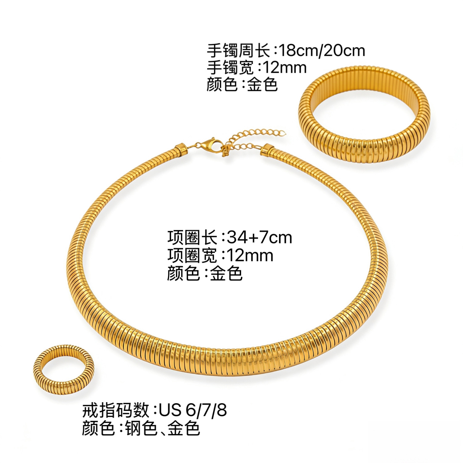 颜色项圈手镯戒指首饰套装