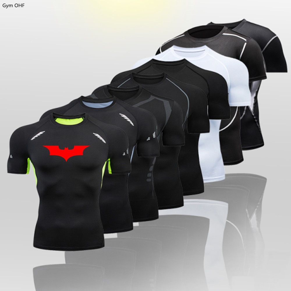 宽蝙蝠侠跨境厂家销售男士健身房紧身T恤速干高弹运动上衣汗衫