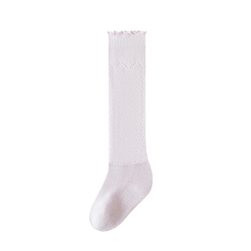 婴儿抗菌袜26春夏网眼纯色宝宝过膝袜木耳花边袜长筒防蚊儿童袜子