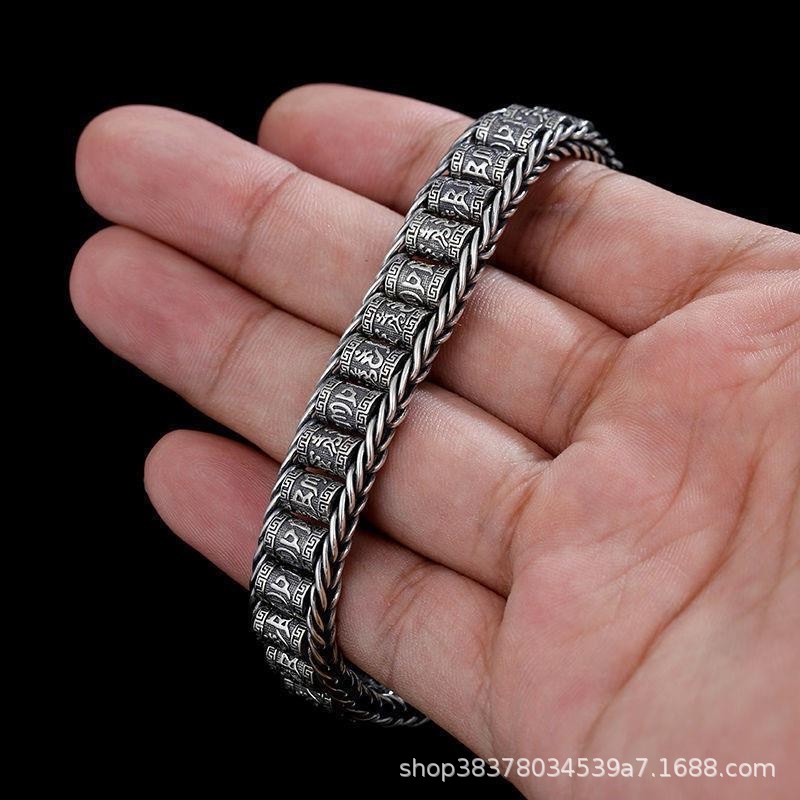 抖音路路通手链潮男女款轻奢编织小众设计感六字真言手环复古个性