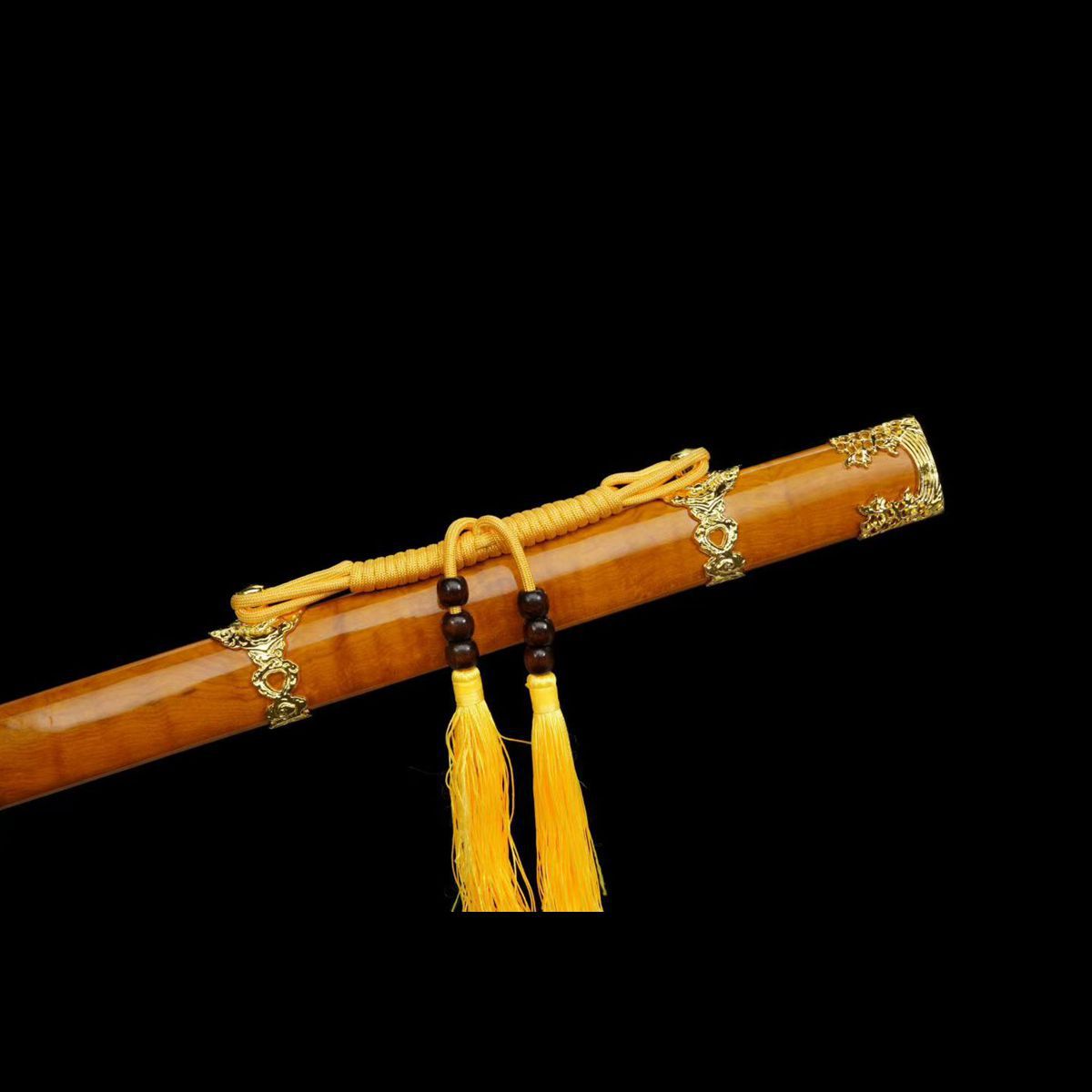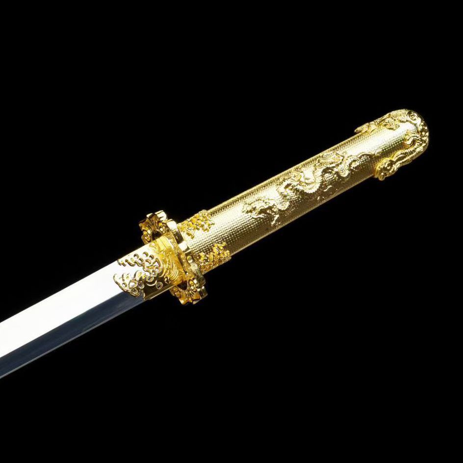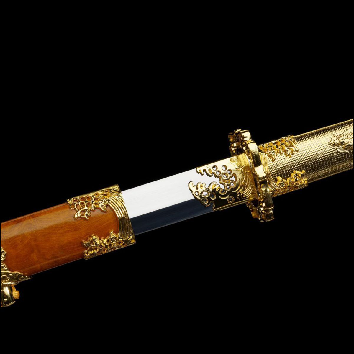 龙泉刀剑高性能S7锋钢一体煅打水龙唐横刀纯铜雕刻镀金收藏未开刃