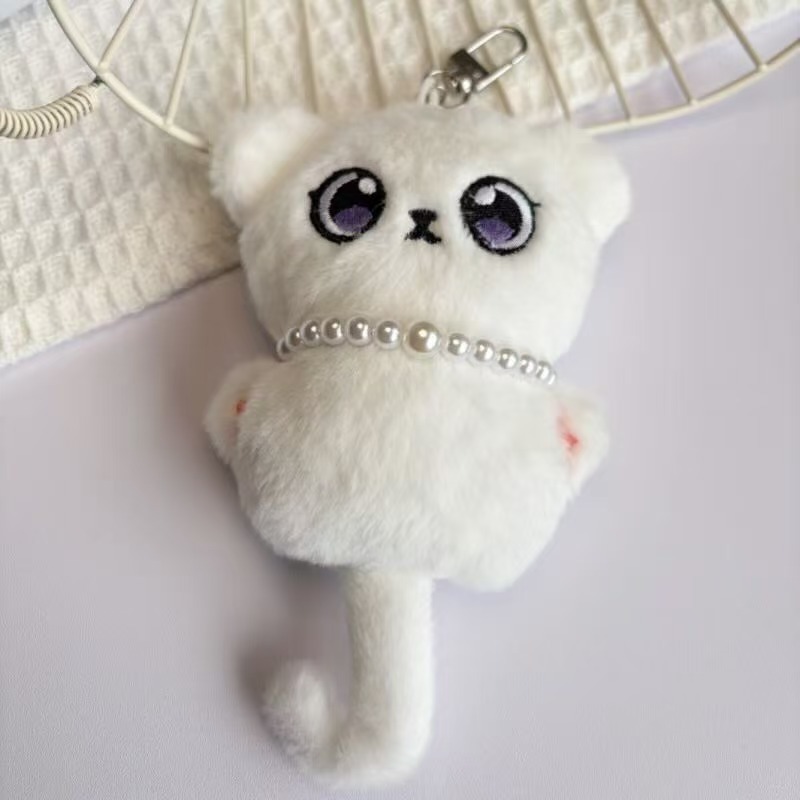 卡通呆萌吱吱叫暹罗猫毛绒猫咪钥匙扣挂件可爱小猫玩偶情侣包挂件
