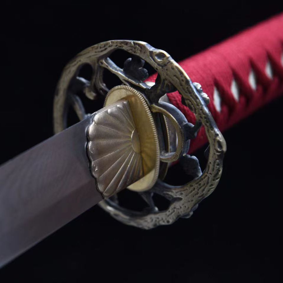 龙泉刀剑纯铜装20寸大马士革钢手工锻打研磨日式打刀冷兵器未开刃
