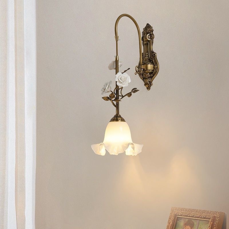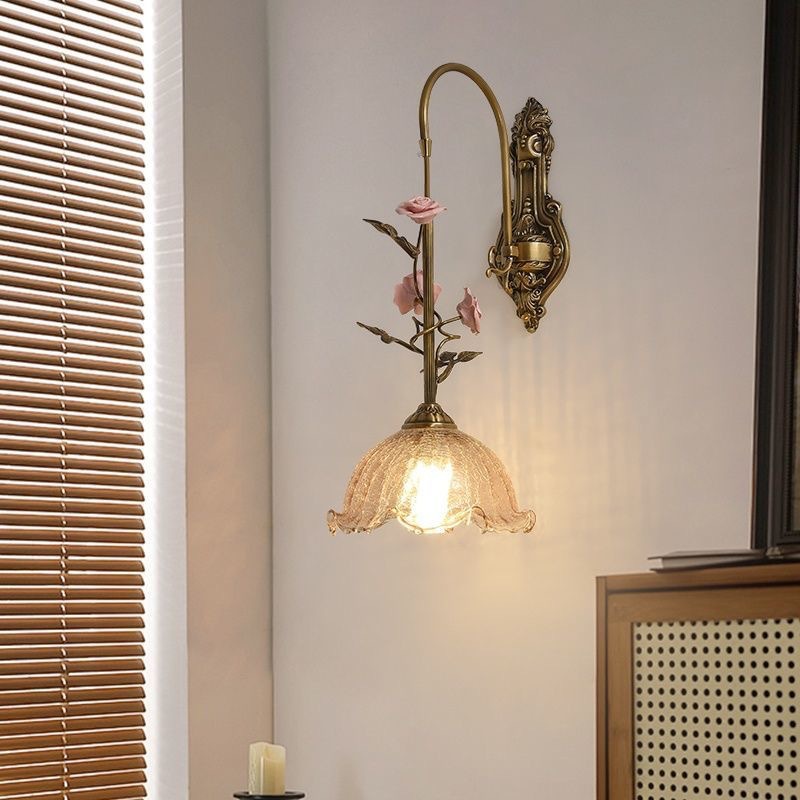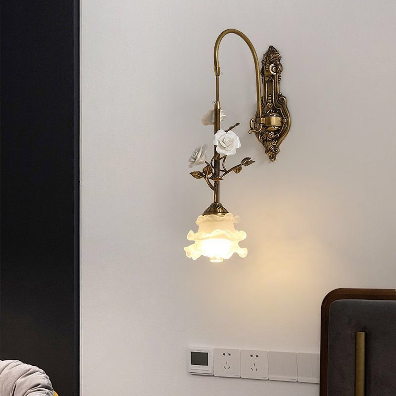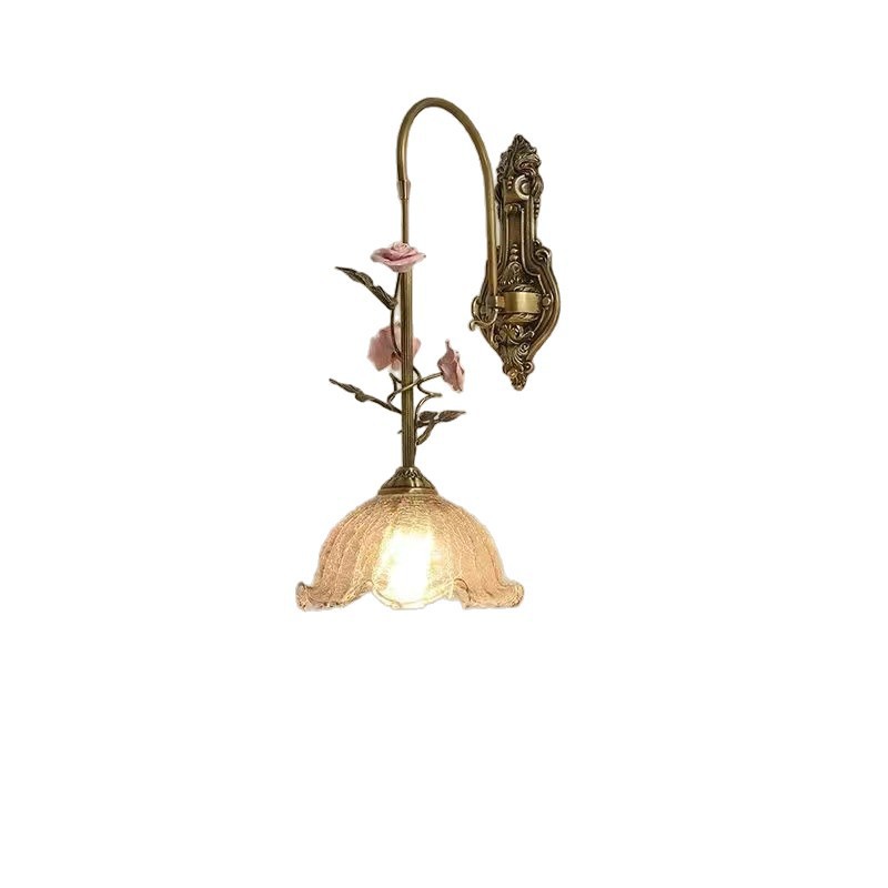 玫瑰花全铜灯法式中古风轻奢高级氛围感美式复古卧室床头装饰壁灯