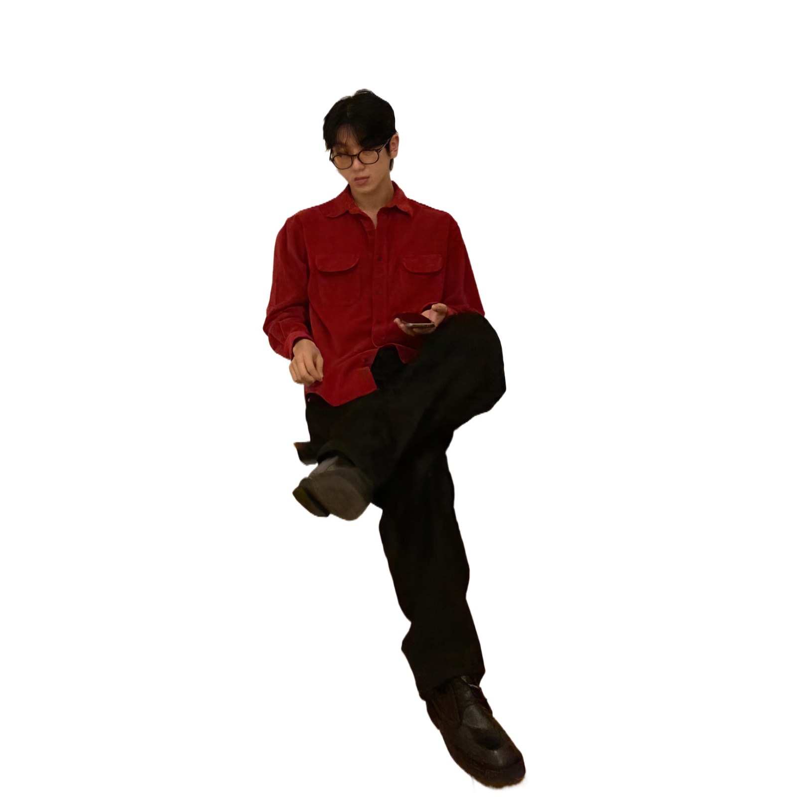 798 Design新年安可拉红色长袖灯芯绒衬衫男士秋冬重磅高级感衬衣