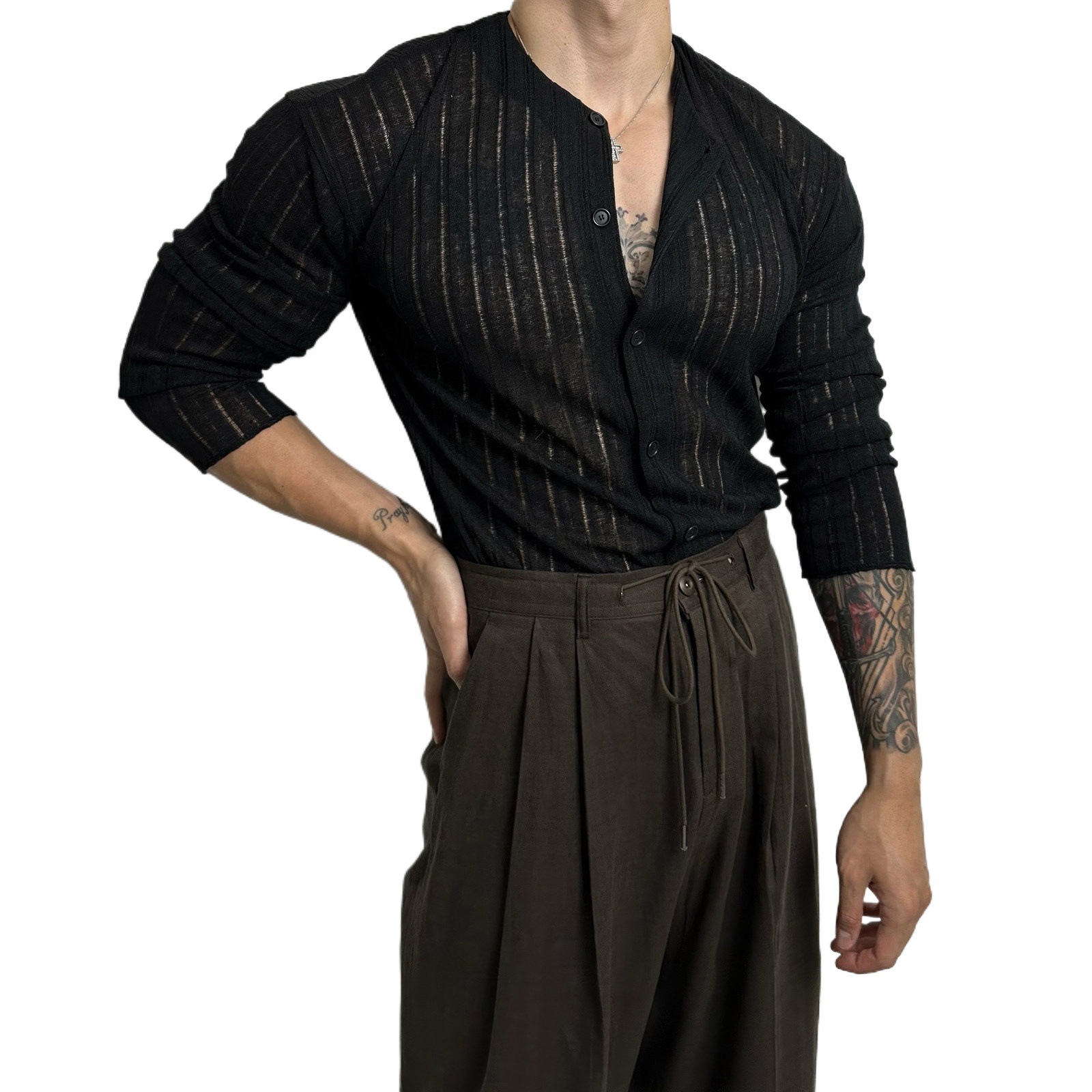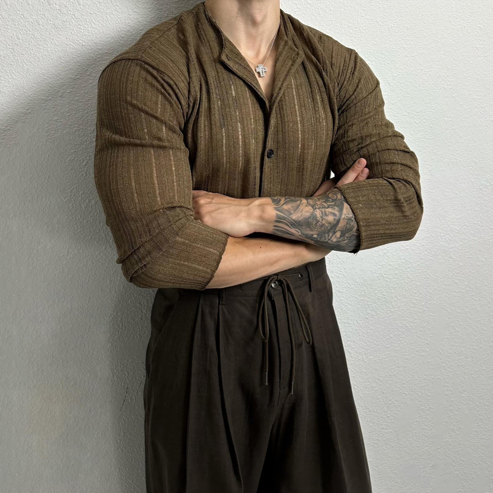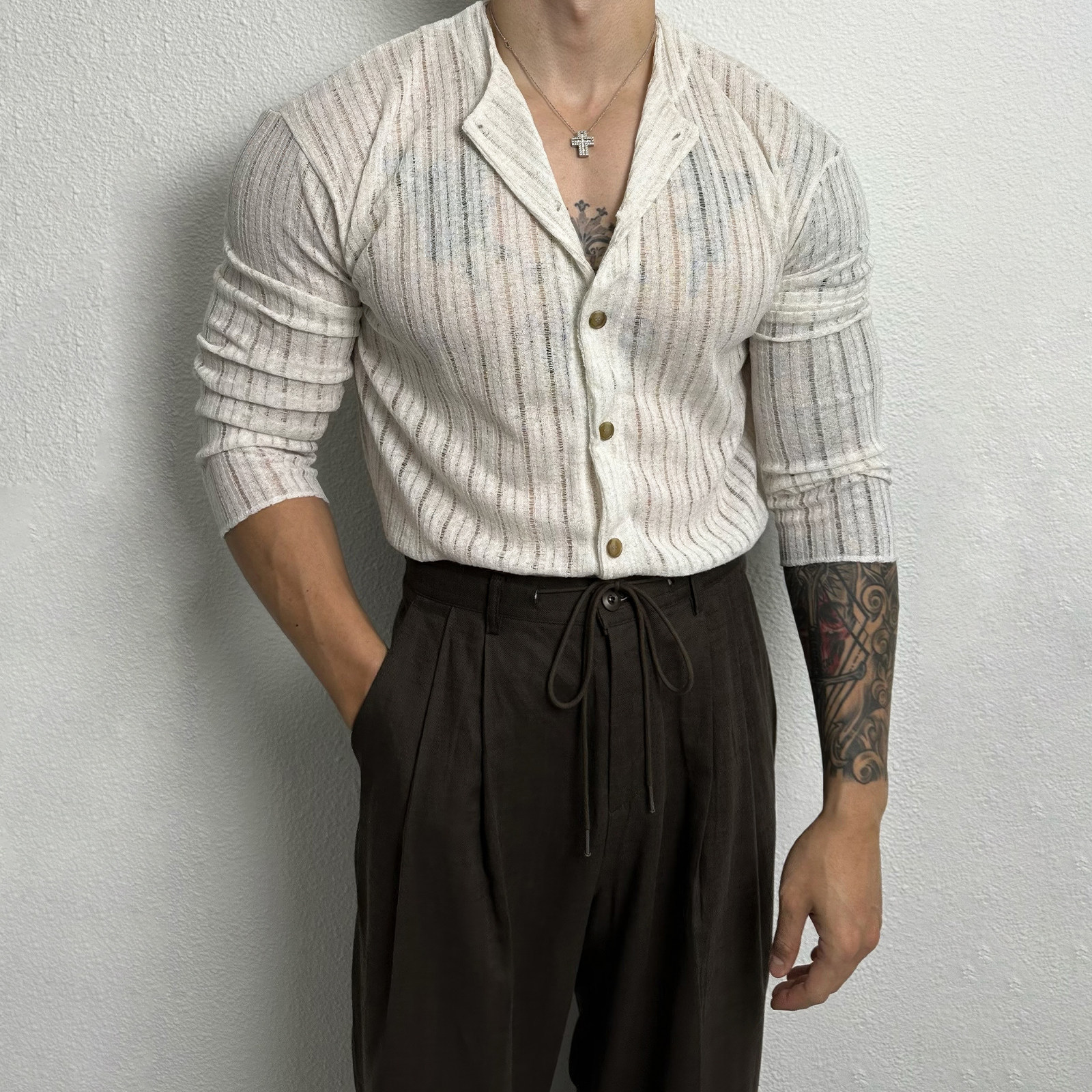 798 Design白色老钱风防晒针织衬衫男士春秋轻薄透气长袖开衫衬衣