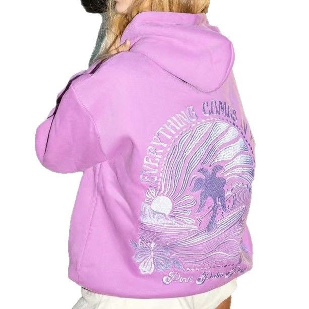 跨境专业刺绣欧码落肩袖连帽衫外套2025新款春秋女卫衣口袋螺纹