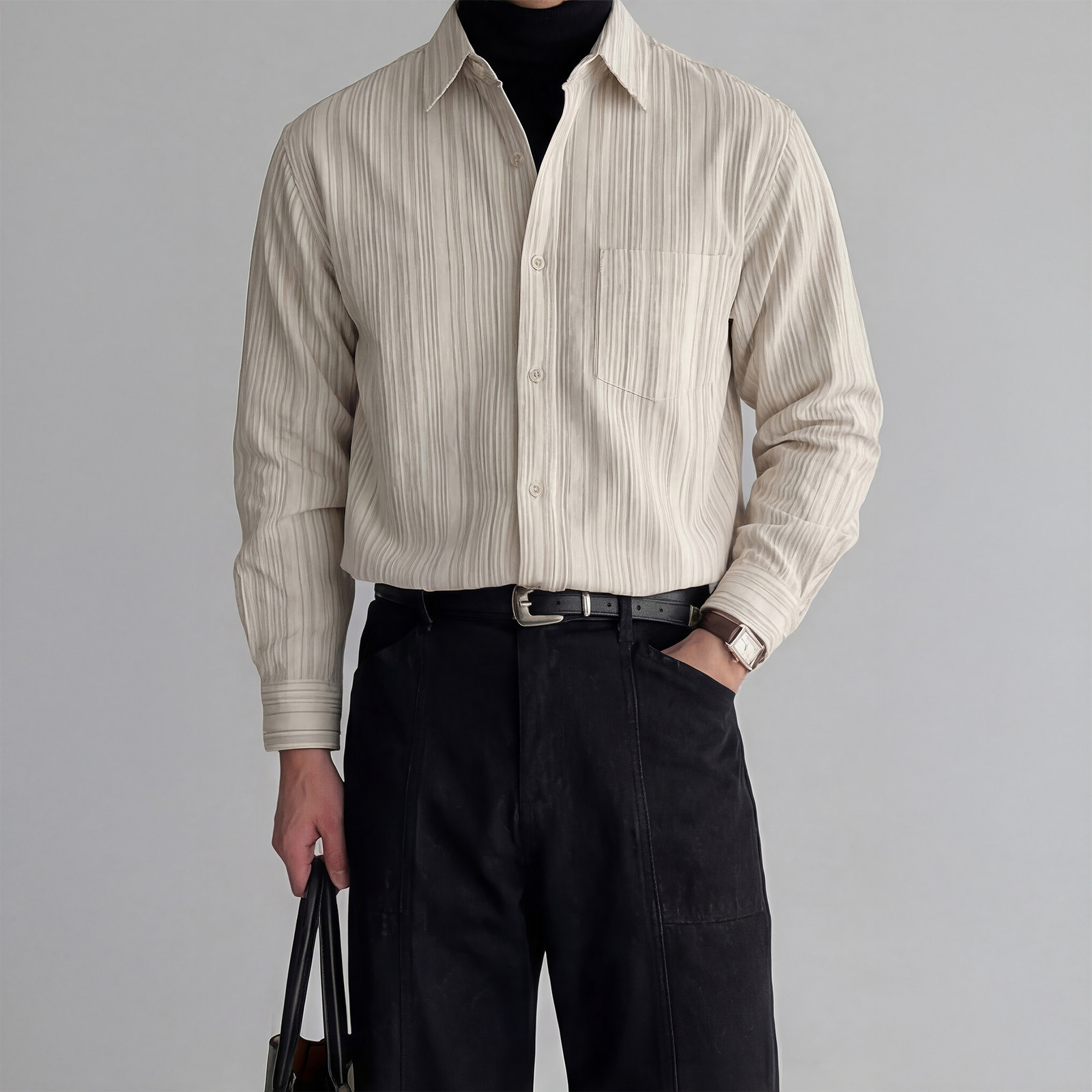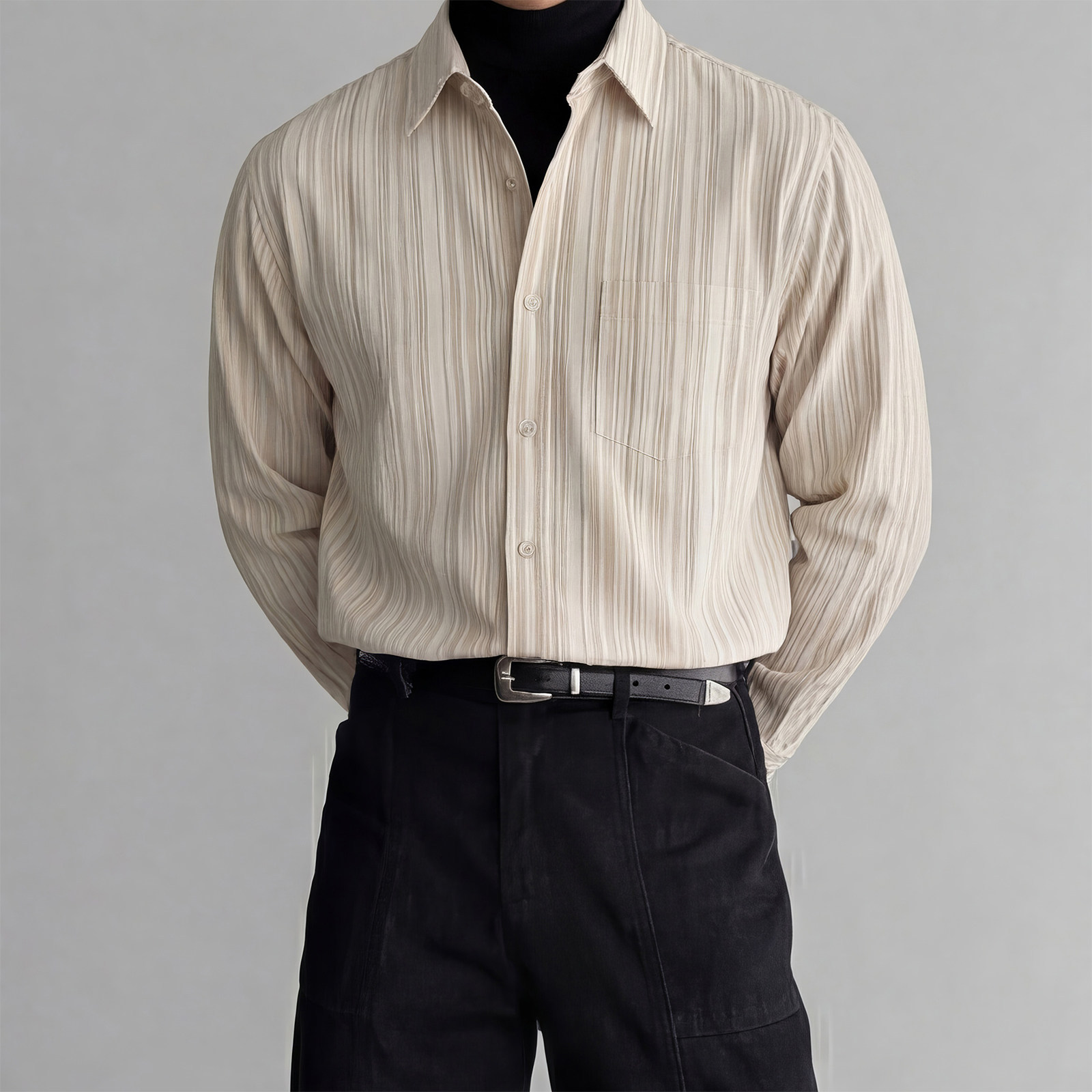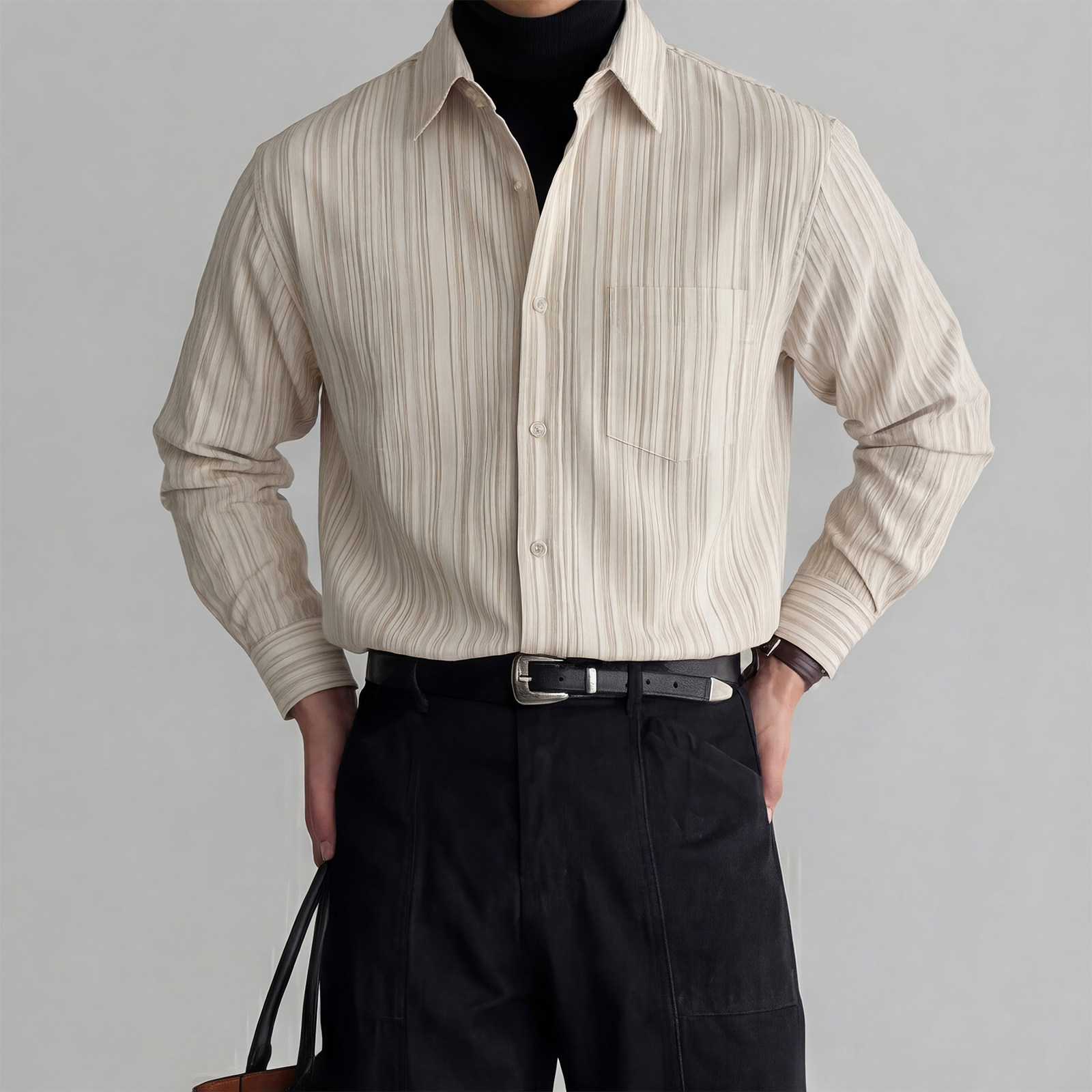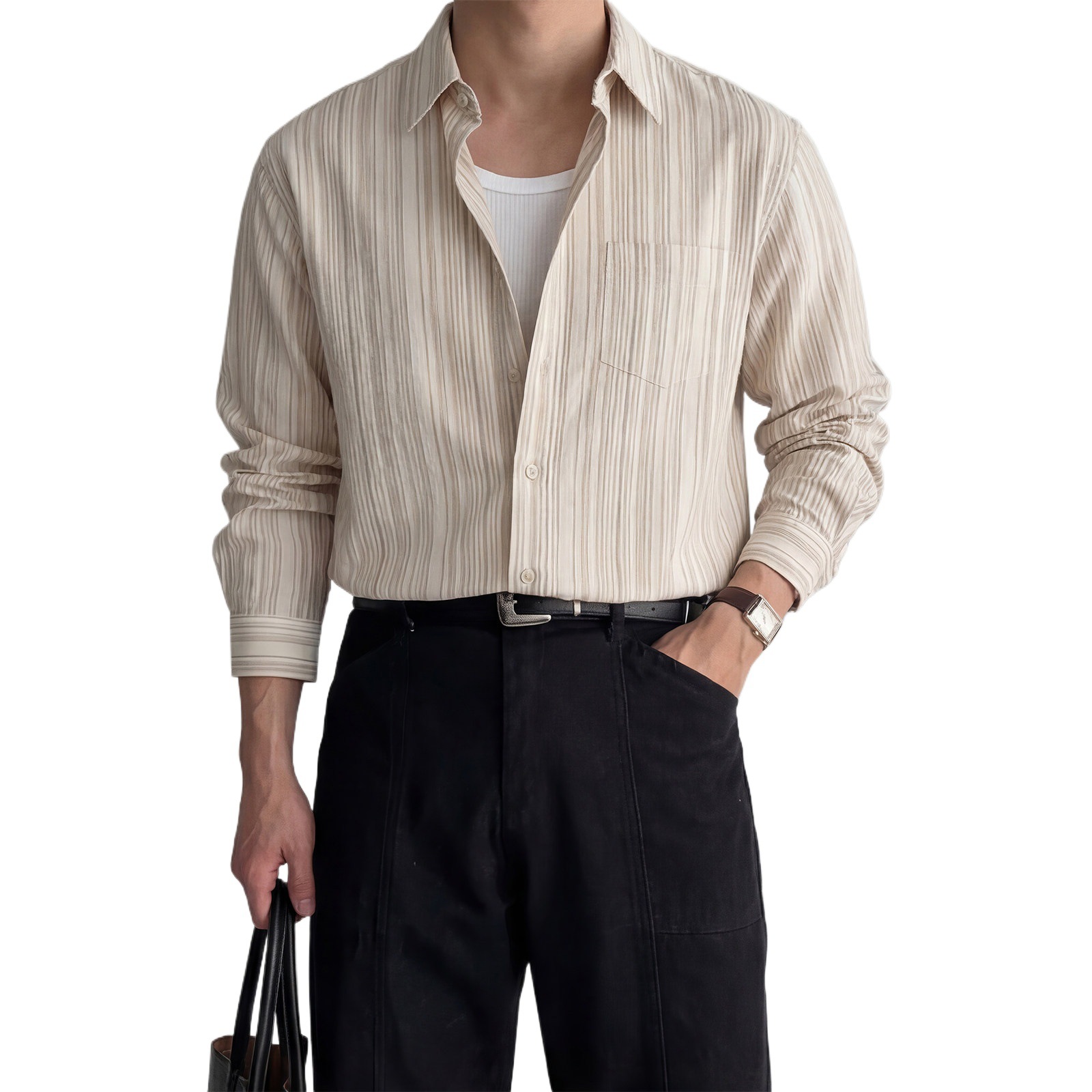 davidme美式老钱风条纹长袖衬衫男春秋高级感clean港风少年感衬衣