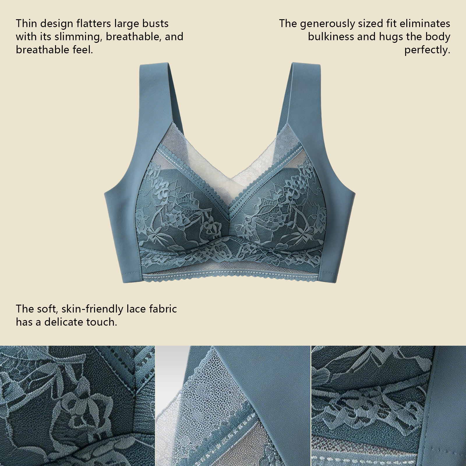 Zeriluna 无钢圈蕾丝内衣 时尚简约蕾丝设计透气舒适亲肤多色内衣