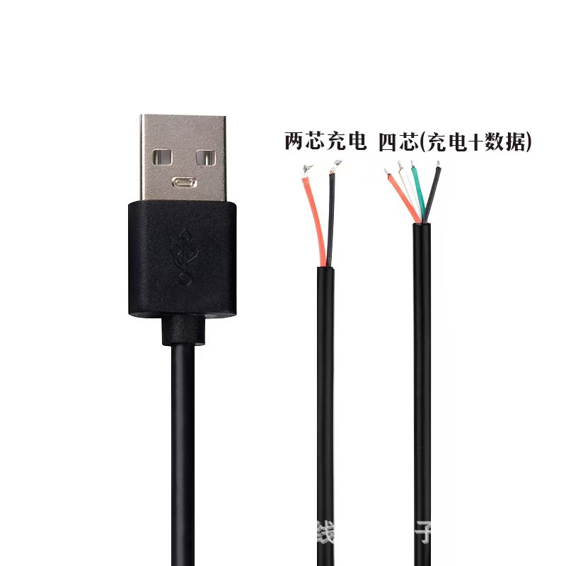 尾卡电源线2芯充电线USB单头线配机线公头半成品烫锡尾电源延长线