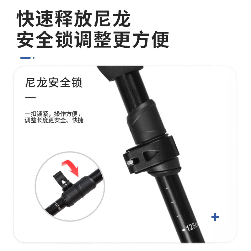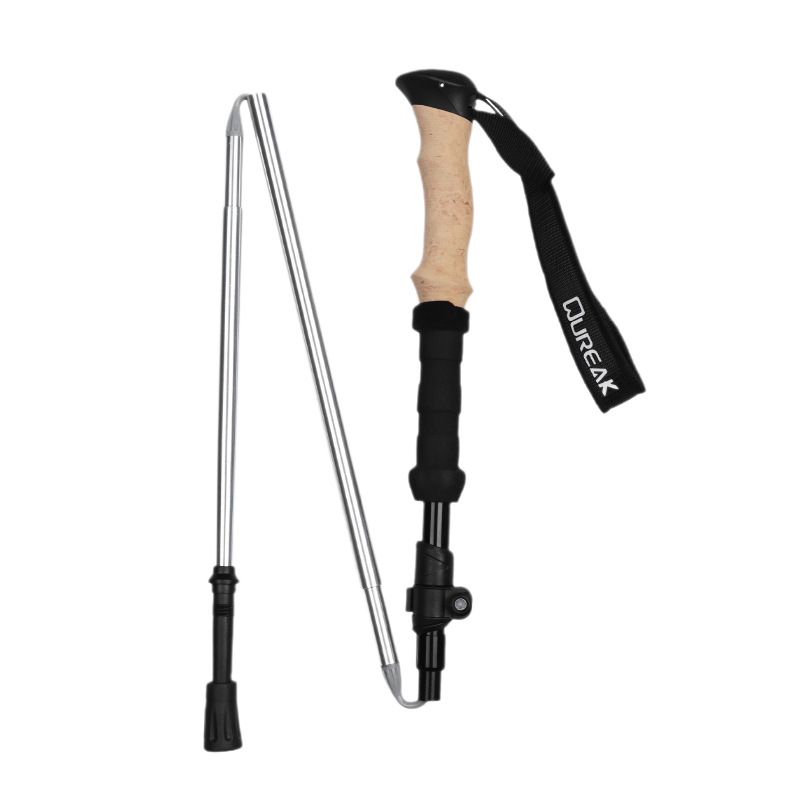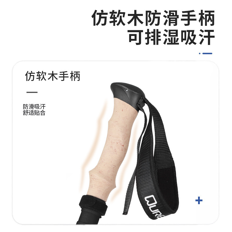铝合金登山杖仿软木手柄三节伸缩超轻户外徒步杖防滑吸汗便携