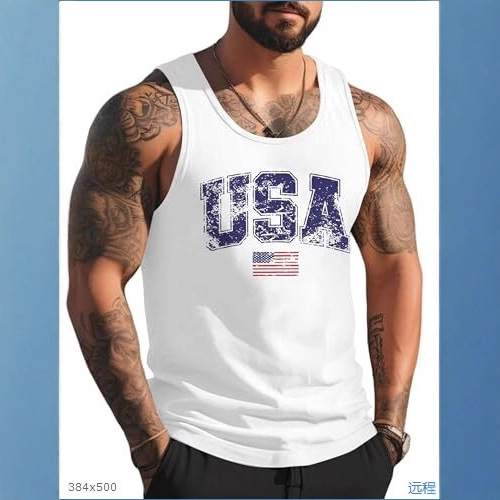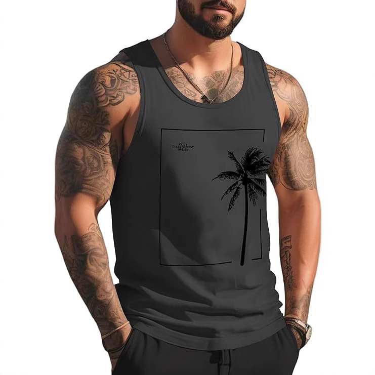 2026跨境夏季海滩度假新款棕榈图案肌肉健身房锻炼休闲风男士背心