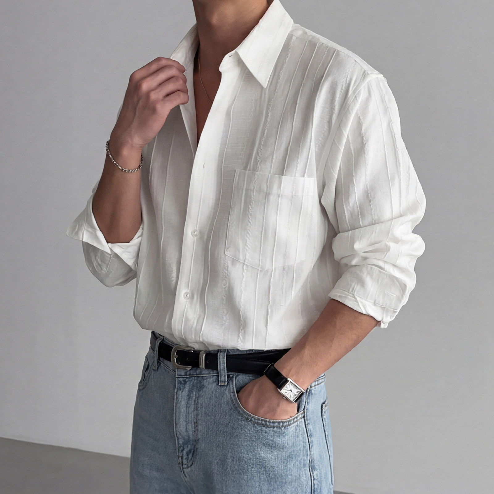 798 Design奶白色挺阔有量感衬衫男夏季韩系设计感衬衣式防晒外套
