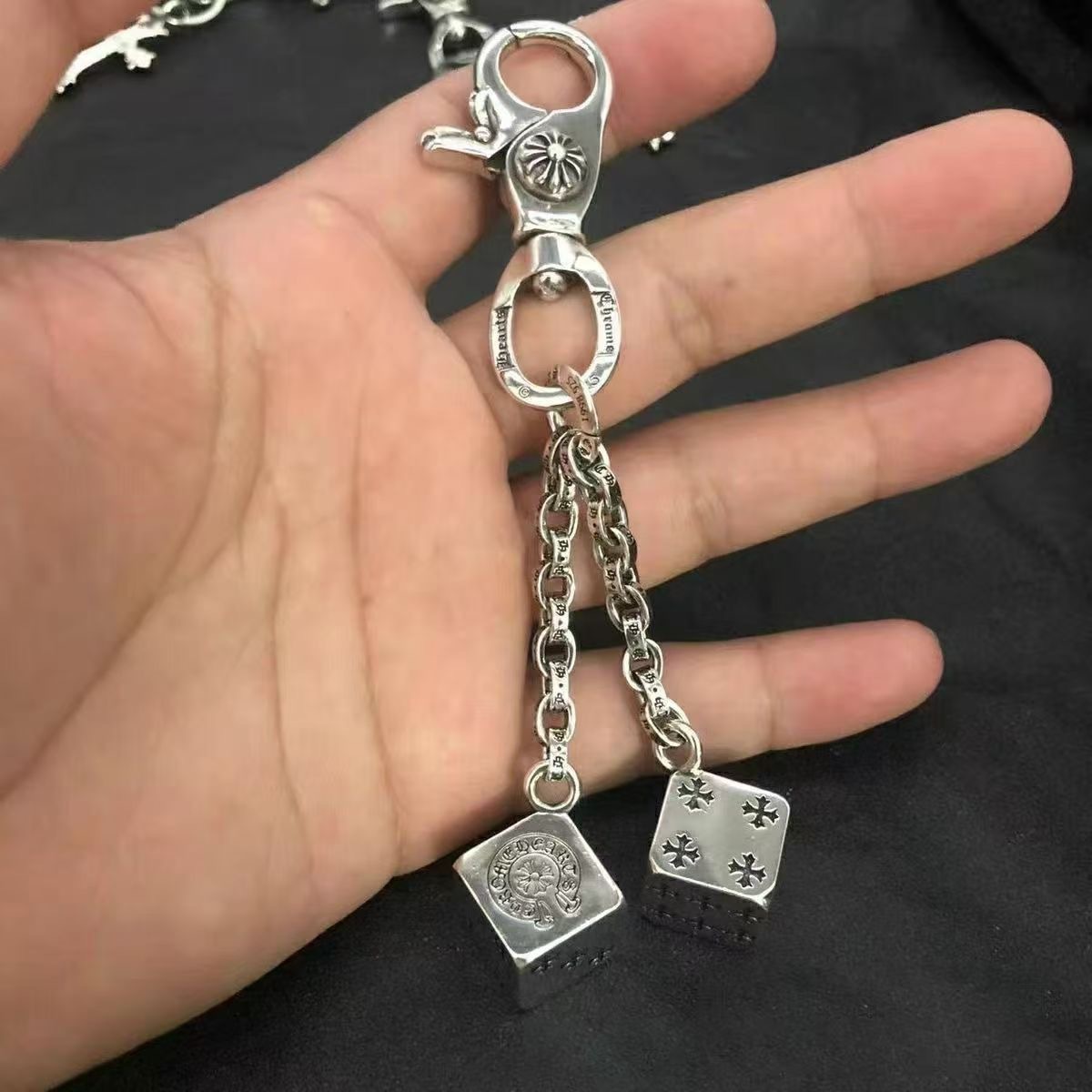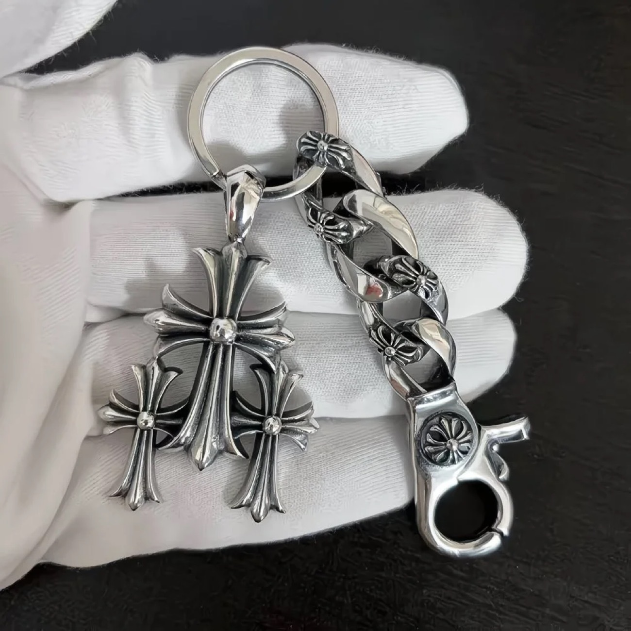 烟雨新款双吊坠十字架船锚心形宝剑龙虾扣个性时尚小众钥匙扣合集
