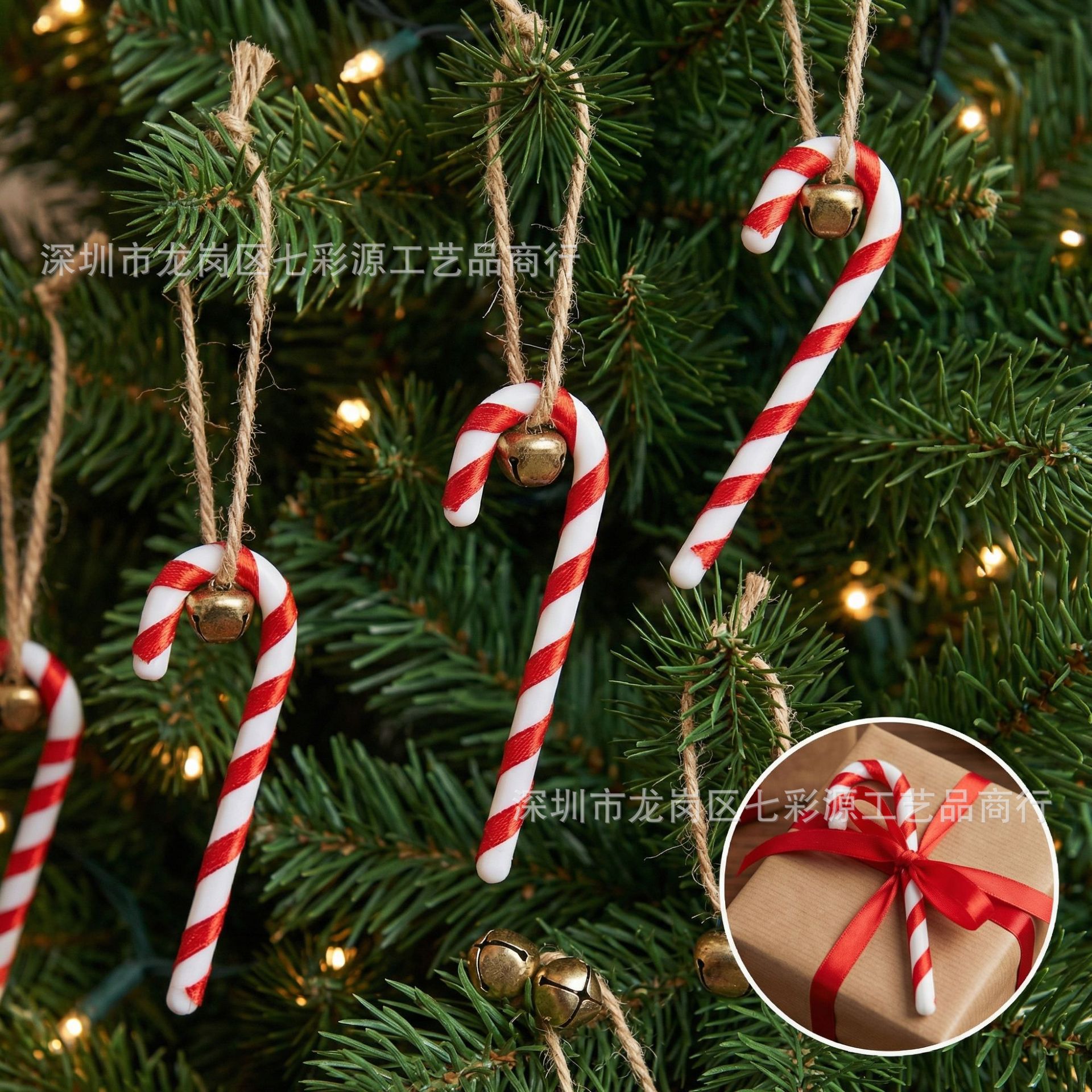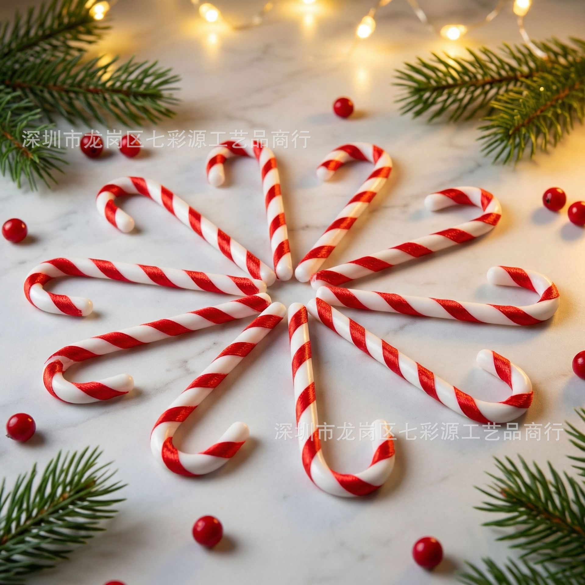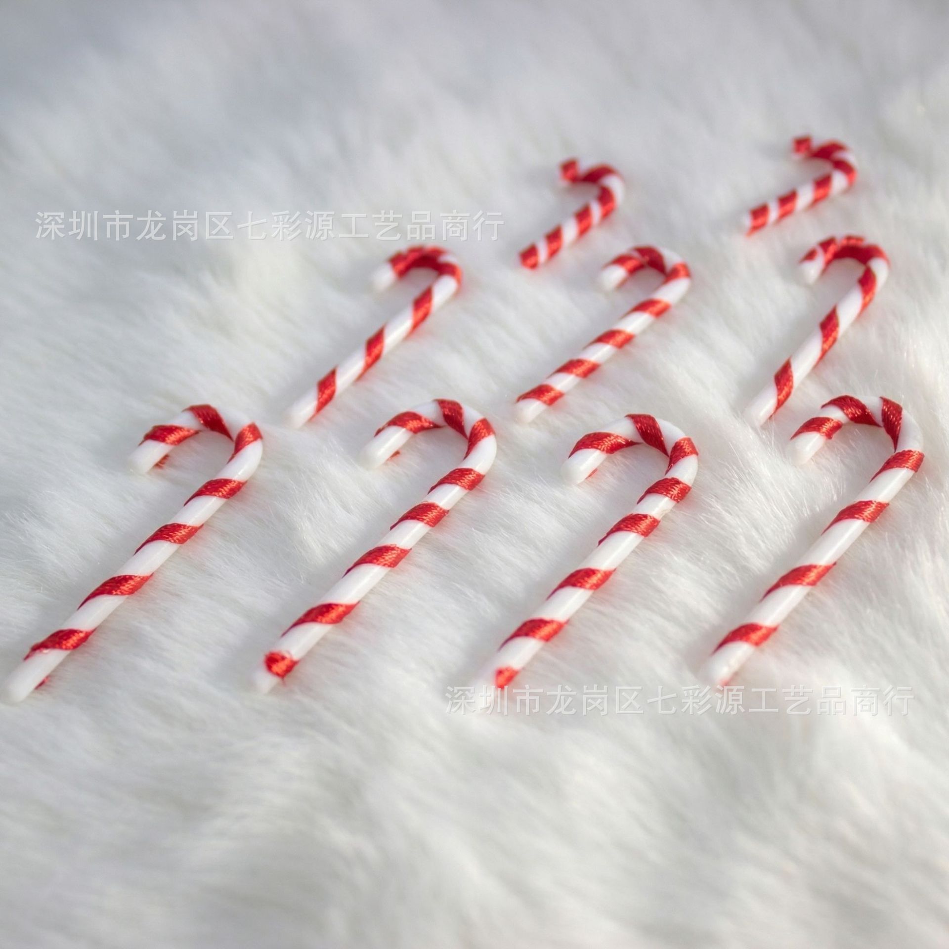 跨境新款圣诞小拐杖挂件锻带红白小手杖风车糖果拐杖圣诞树装饰