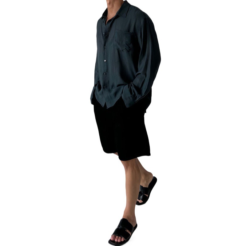 浅蓝色垂感长袖衬衫男士春季薄款凉感英伦雅痞风宽松休闲防晒衬衣