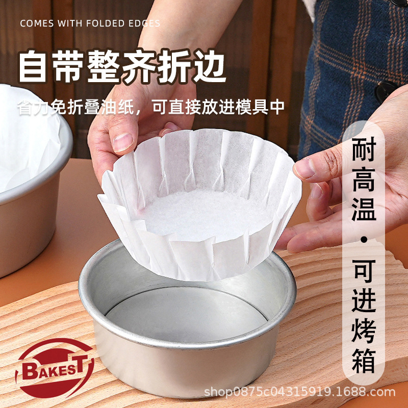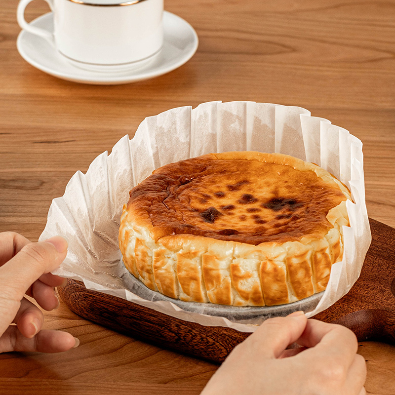 巴斯克油纸4/6/8寸免折叠纸托模具烘焙甜品防油包装蛋糕切块垫纸