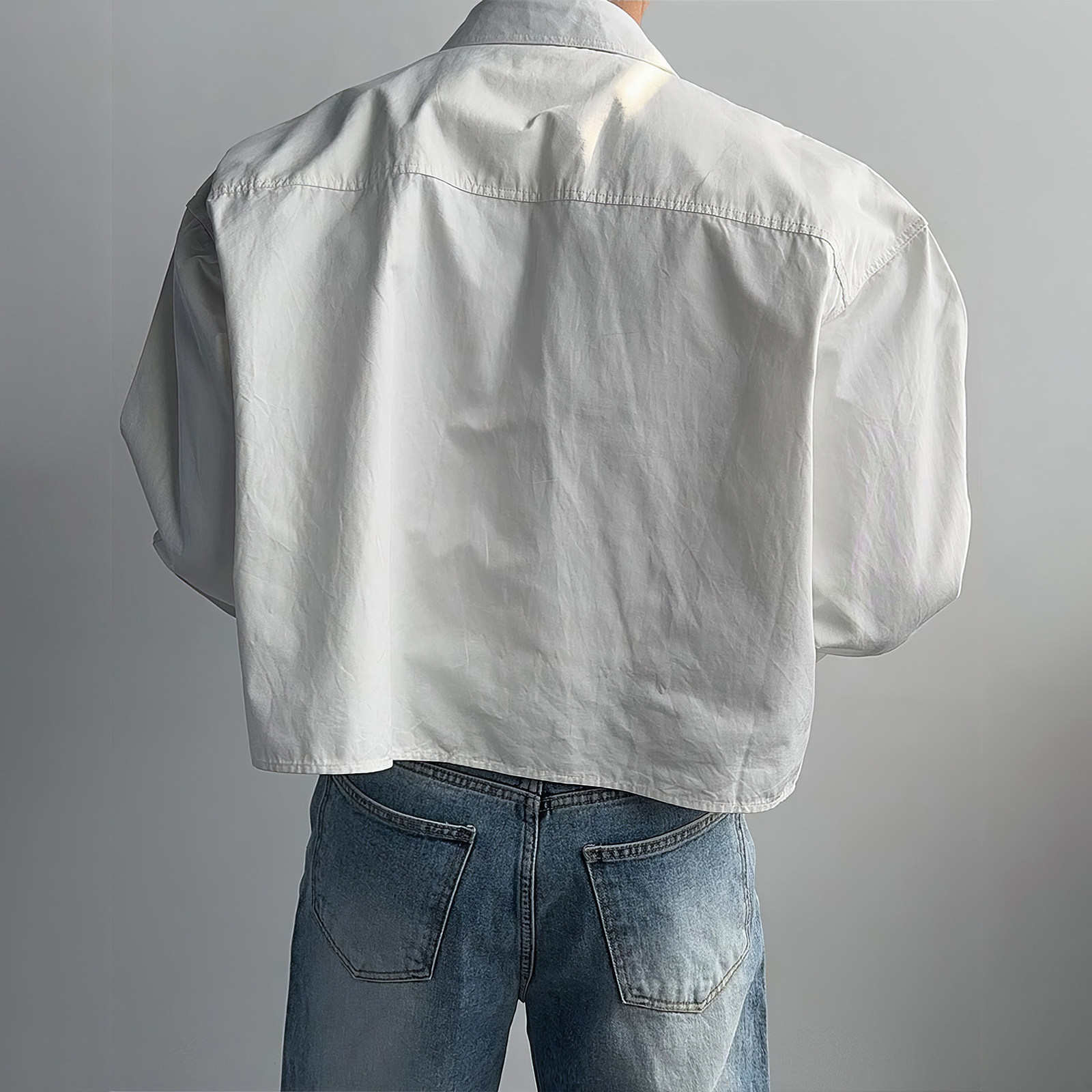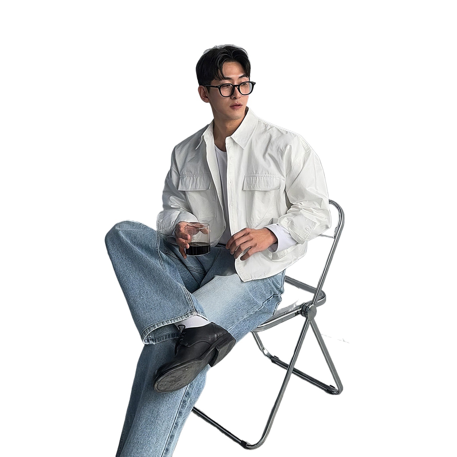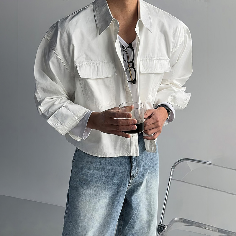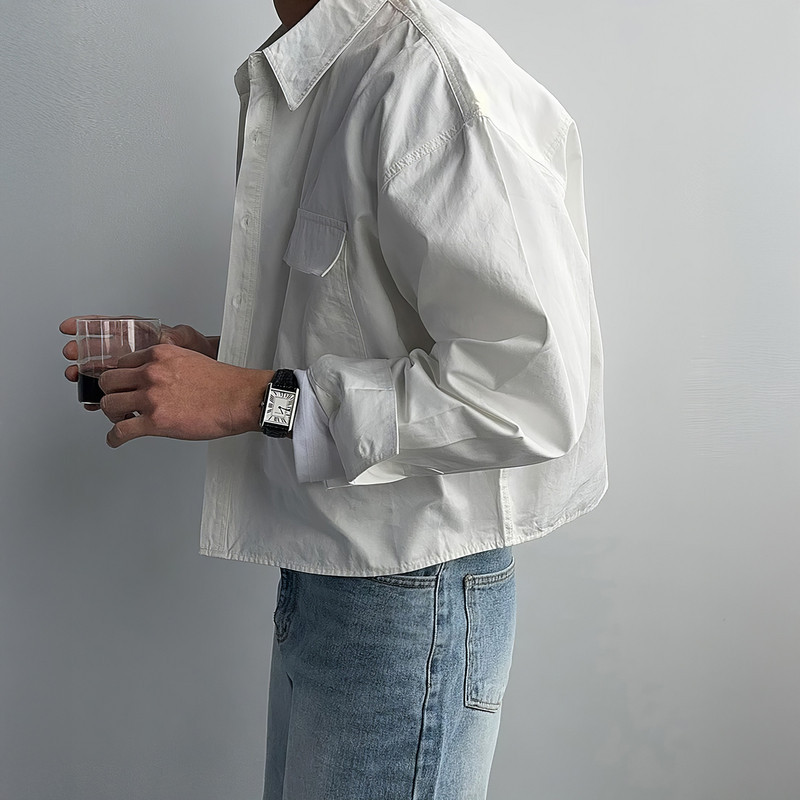 老钱风长袖翻领衬衫男春秋美式显腿长短款外套高级感通勤开衫衬衫